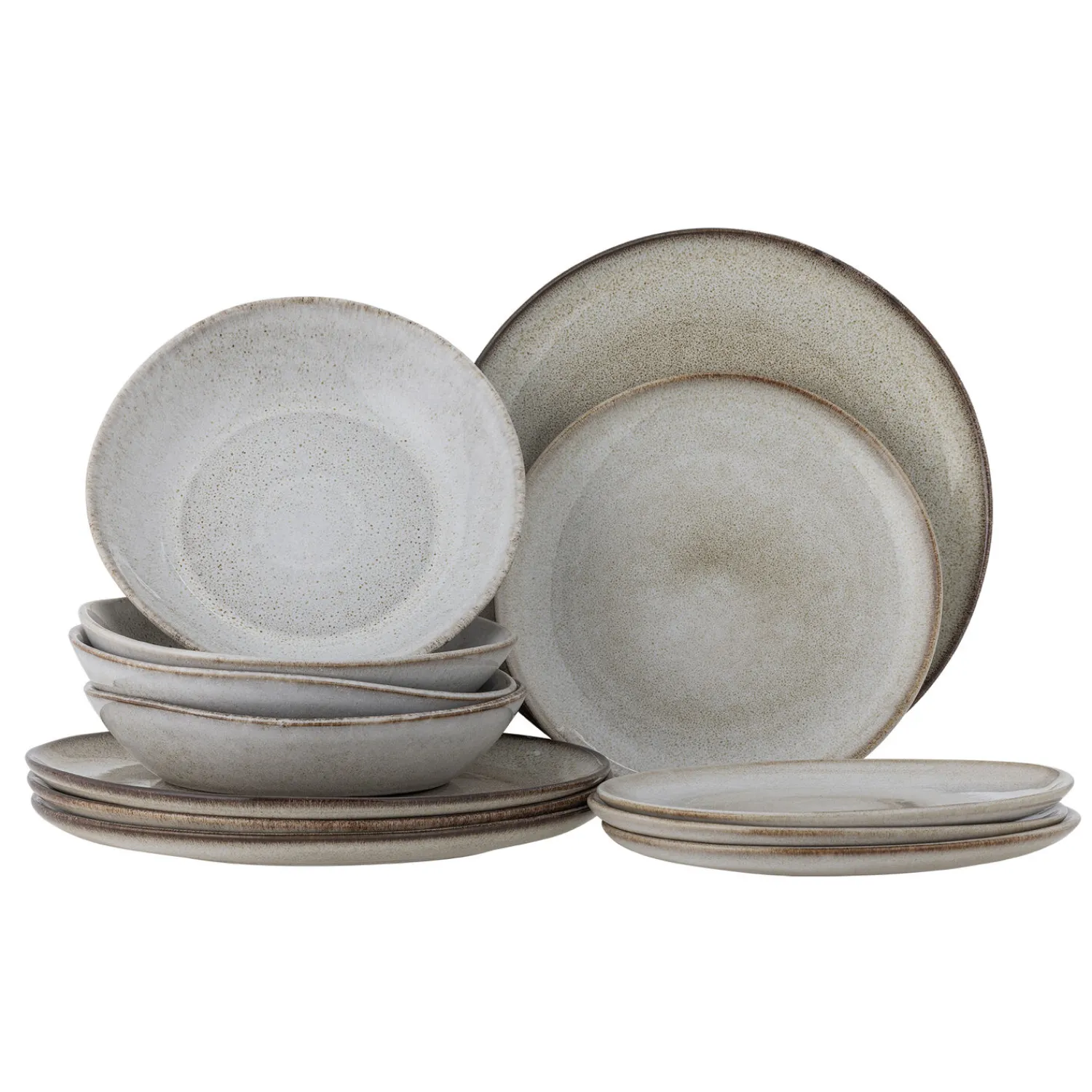 De forskellige størrelser af tallerkener og skåle giver dig fleksibilitet ved servering. Den håndlavede glasering betyder, at hvert enkelt stykke kan have små variationer i udseendet, hvilket bidrager til sættets karakteristiske udtryk.