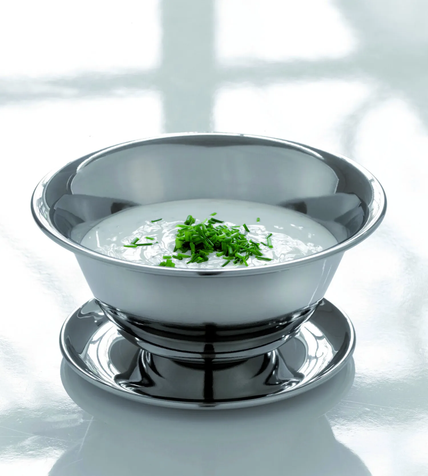 Den matchende bund holder skålen sikkert på plads og forhindrer, at den glider på bordet. Dette giver dig ro i sindet, når du serverer varme saucer, eller når skålen skal sendes rundt om bordet ved større selskaber.