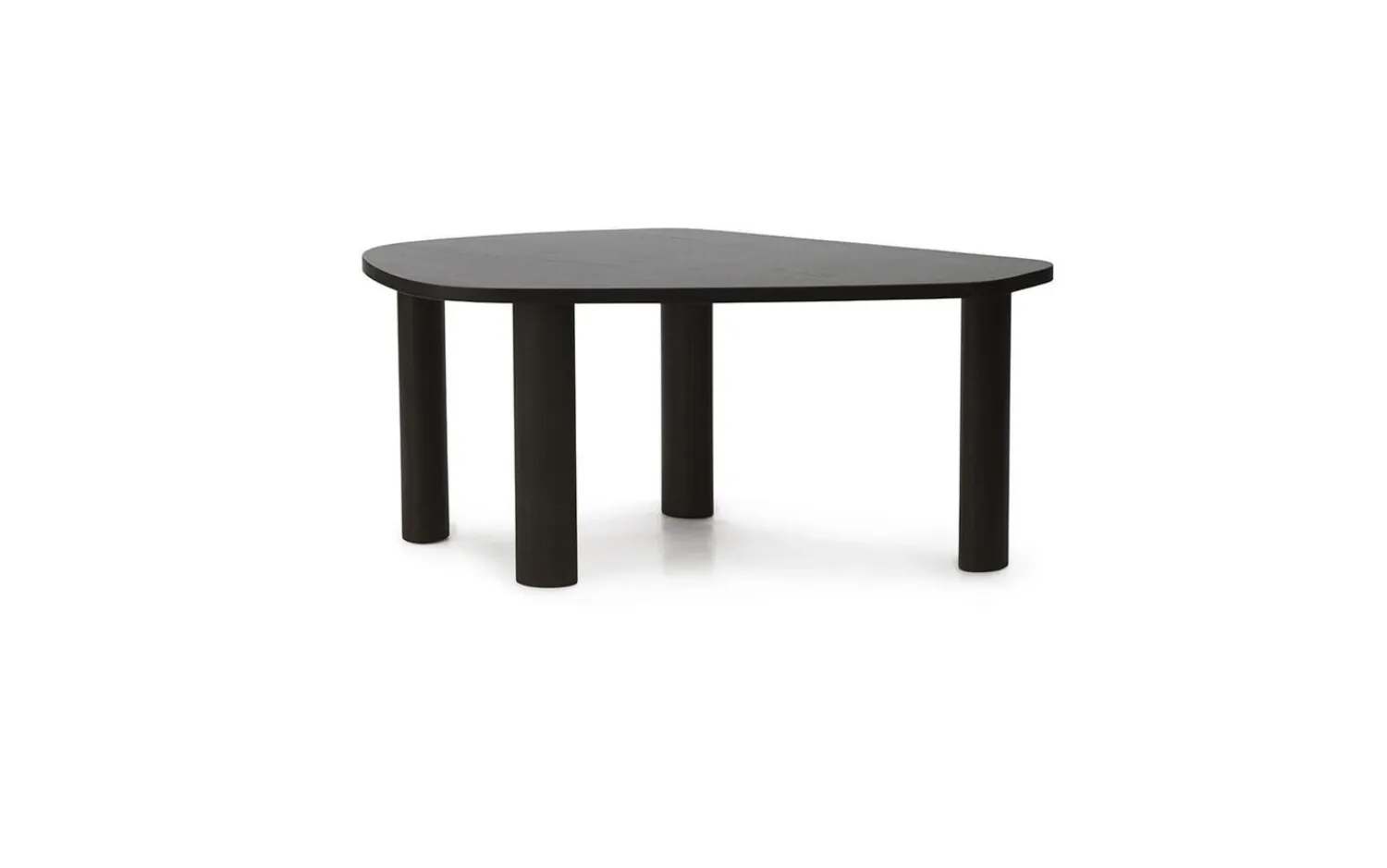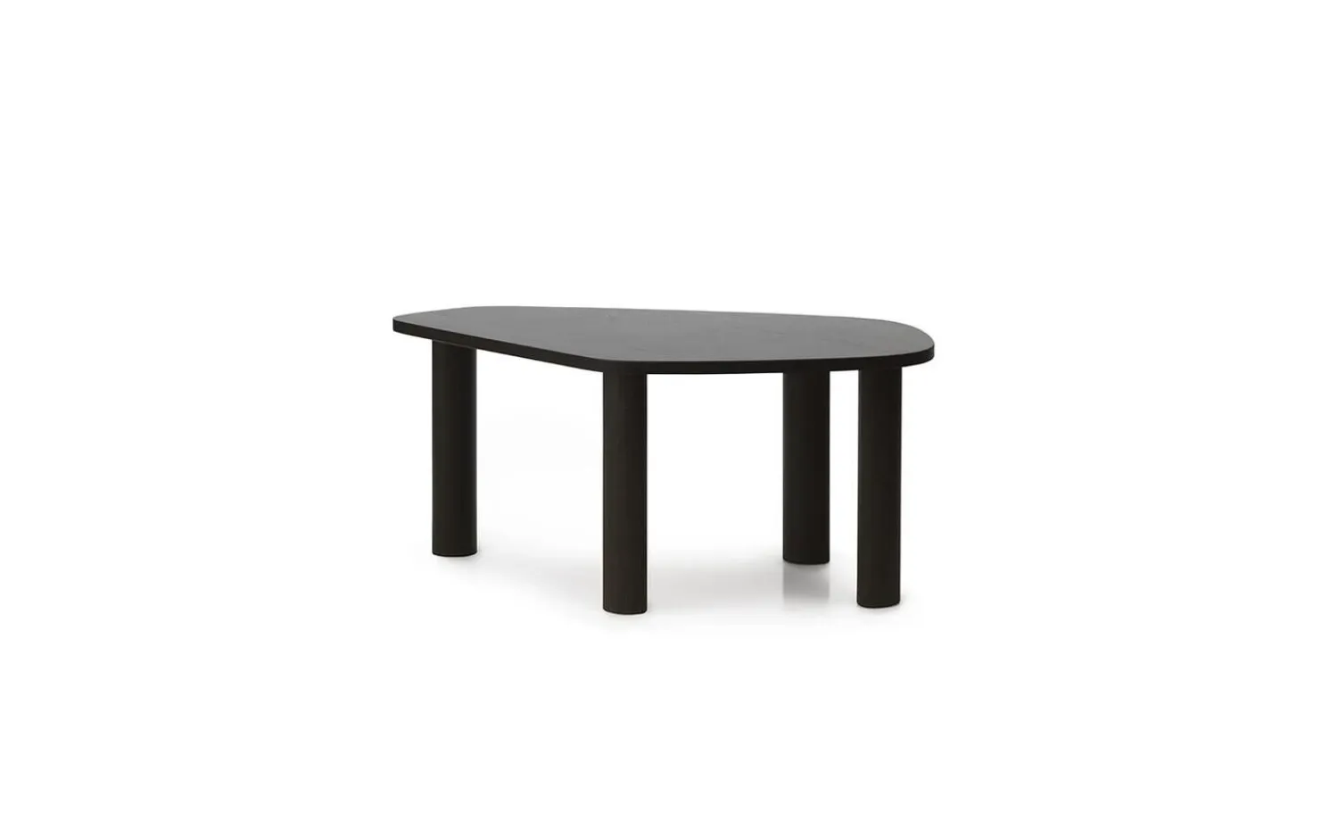 Dette sofabord er fremstillet af 100 % massivt asketræ, der sikrer lang holdbarhed i dit hjem. Den organiske form med afrundede kanter skaber et naturligt midtpunkt i stuen, mens den dybe brune bejdsning fremhæver træets smukke struktur.