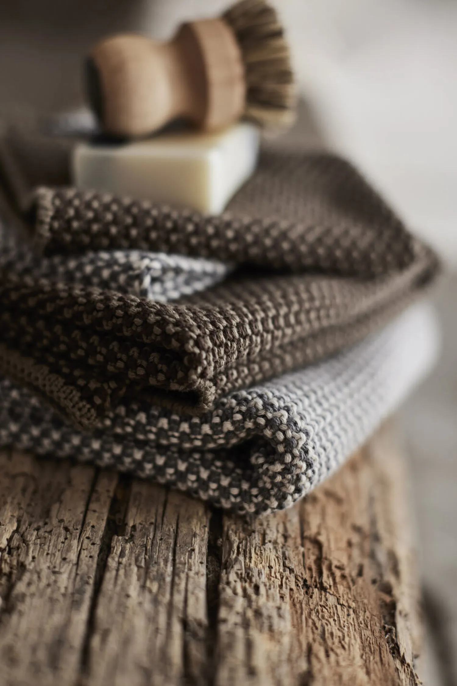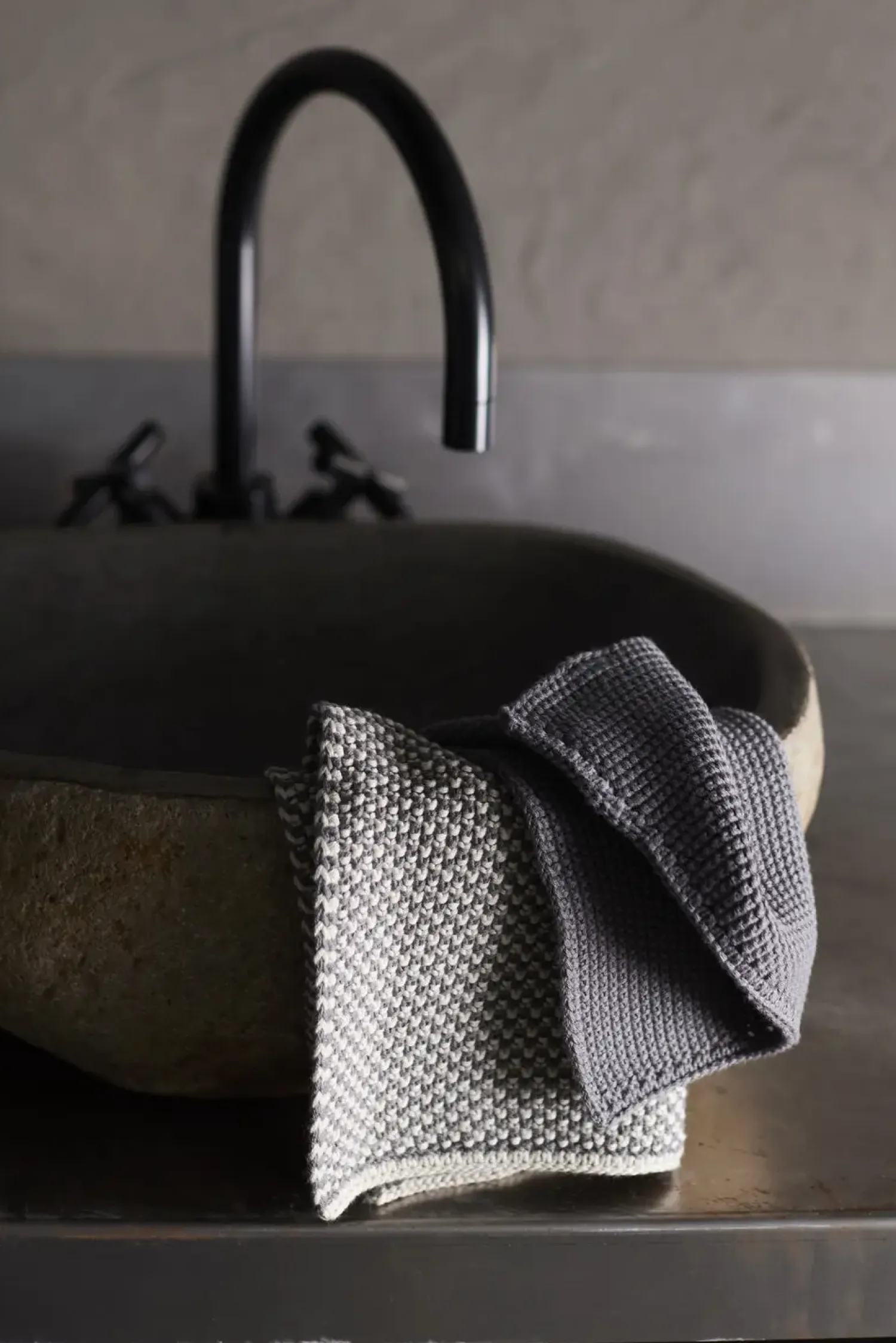 Sentaku er en serie af køkkentekstiler, der fejrer æstetik og funktionalitet og har sit navn fra det japanske ord for at ”vaske” – en daglig påmindelse om ro og harmoniske omgivelser, der starter med rene overflader.De elegante og dekorative Sentaku karklude er lavet af 100% økologisk bomuld i en blød, strikket kvalitet, uden mikrofibre eller plast, hvilket gør dem til et mere miljøvenligt valg for dit køkken.Sentaku karkludene er et perfekt supplement til dine køkkentekstiler, og den melerede strikeffekt, tilfører et stilfuldt præg, der passer perfekt ind i ethvert køkken. Brug dem sammen med køkkenhåndklæderne fra samme serie, for at skabe harmoni i køkkenindretningen. Karkludene sælges i sæt af 2 stk. Tip: Det anbefales at udskifte dine karklude dagligt for optimal hygiejne.Plejeanvisning: Karkluden kan maskinvaskes ved 60 grader. Vaskes med samme farver. Må IKKE tørretumbles. Størrelse: 27×27 cmMateriale: 100% økologisk bomuld.Design: Kira Usbeck