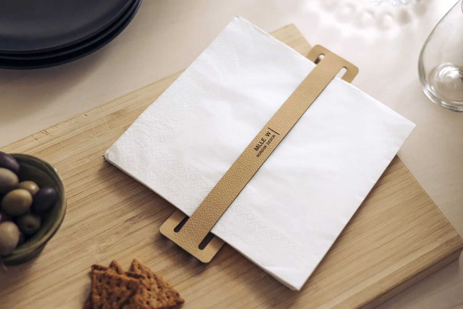 Bæredygtig, elegant og luksuriøs servietholder i læder fra MiLLE W NORDISK DESIGN. Denne servietholder er både et funktionelt element til at præsentere dine servietter på smukkeste vis, samt en smuk dekoration, der tilfører varme og stil til enhver borddækning. Anvend den både ude på terrassen eller indenfor på spisebordet.