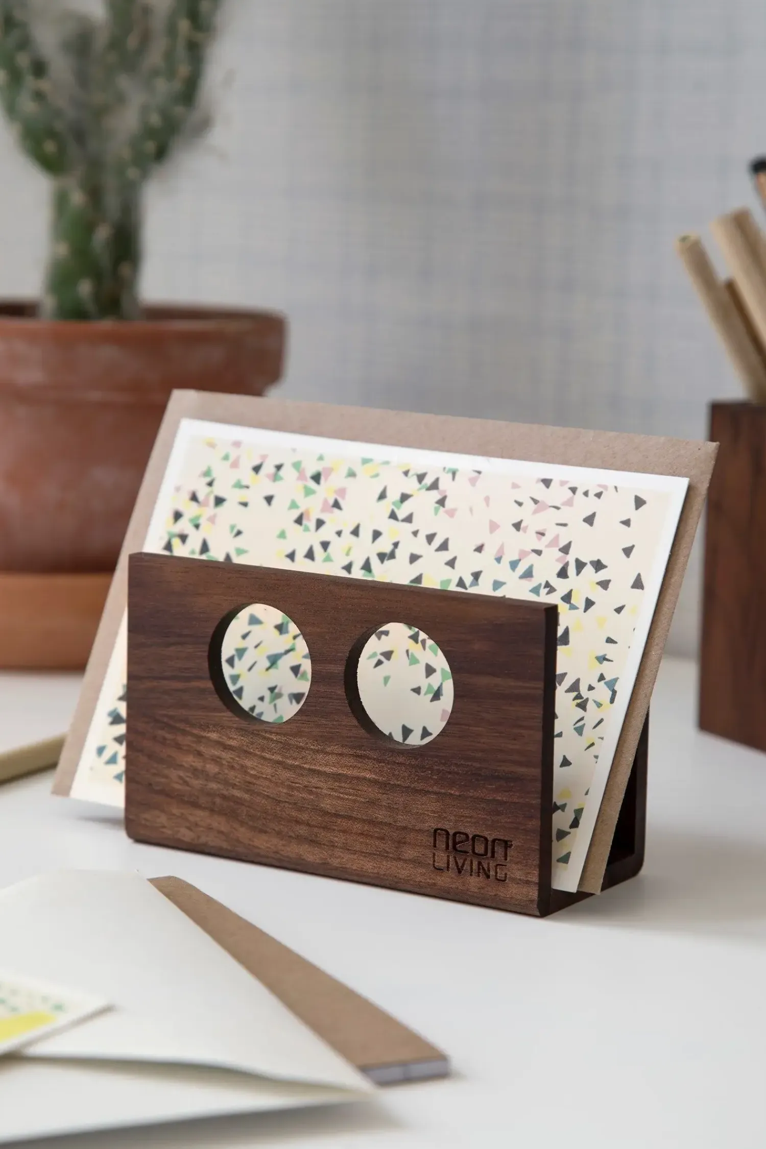 Flot serviet eller brevholder fra Neon living. Den kan både bruges som serviet eller brevholder. Den har en flot mørk træ farve som vil passe godt ind i et hvert hjem. I samme serie findes også en mappeholder og blyantholder i valnødtræ fra Neon living.