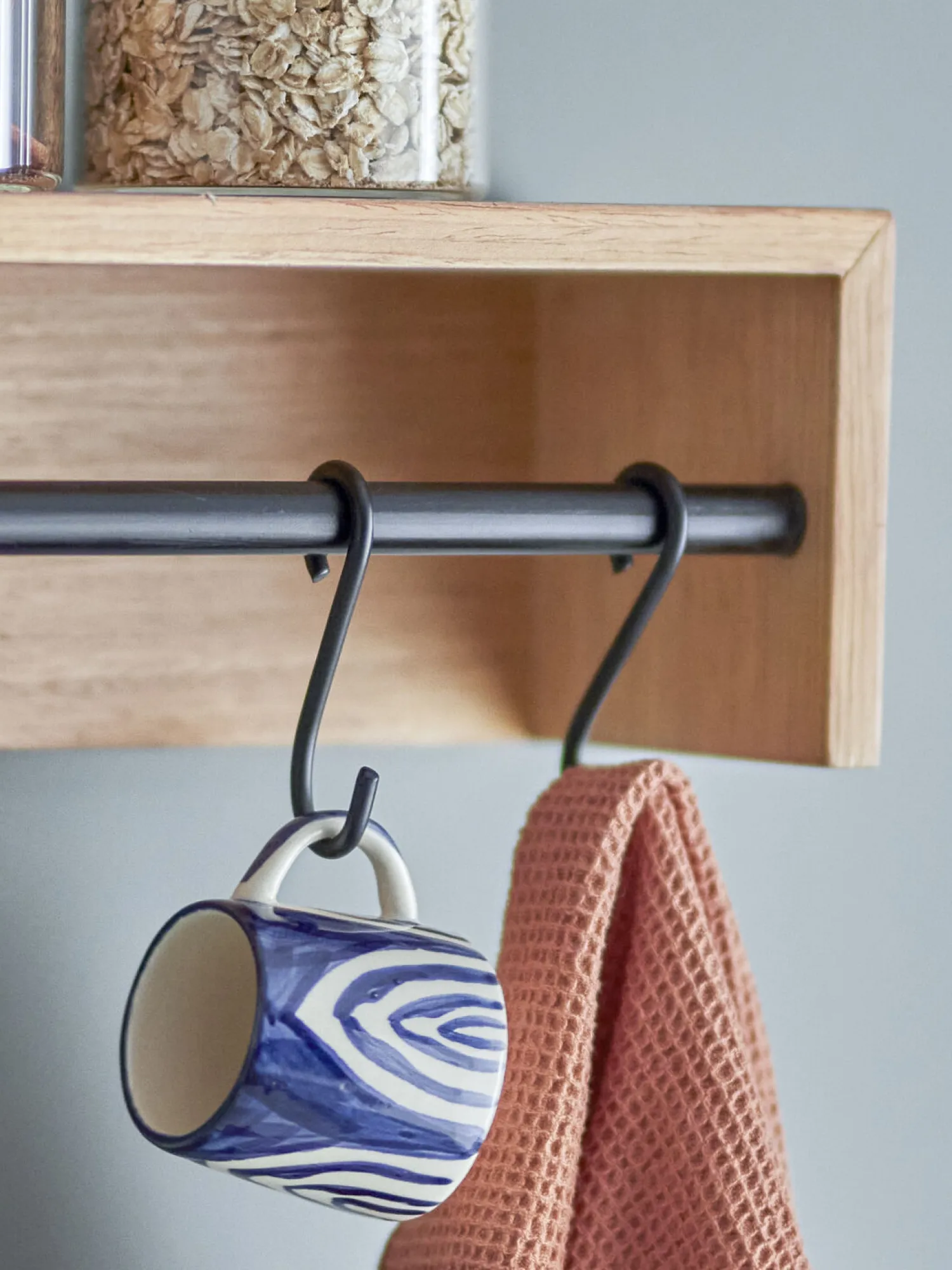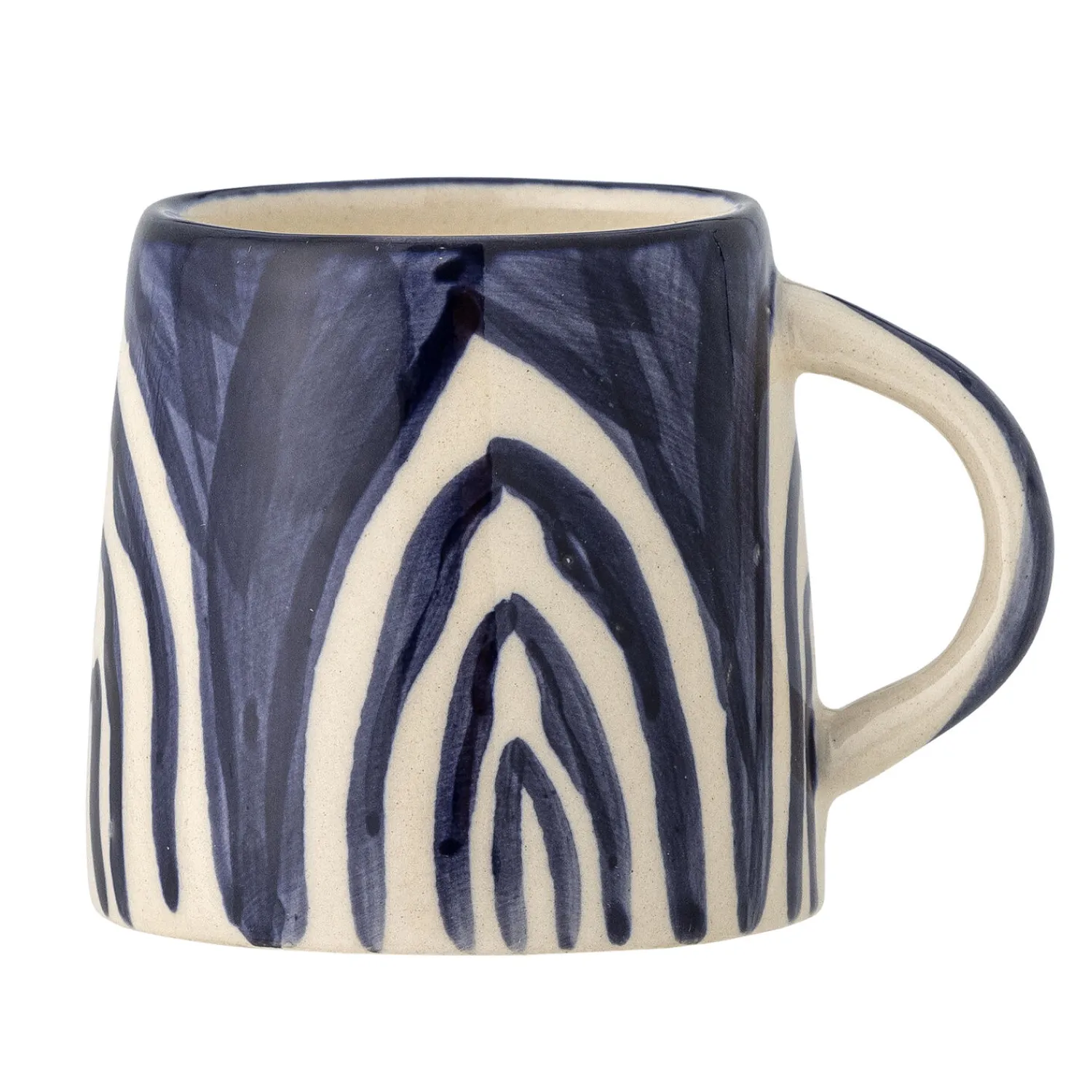 Det organiske, blå mønster er håndmalet på hver enkelt kop, hvilket betyder, at du får et helt unikt stykke håndværk. Den kompakte størrelse gør koppen ideel til ophængning, når den ikke er i brug.
