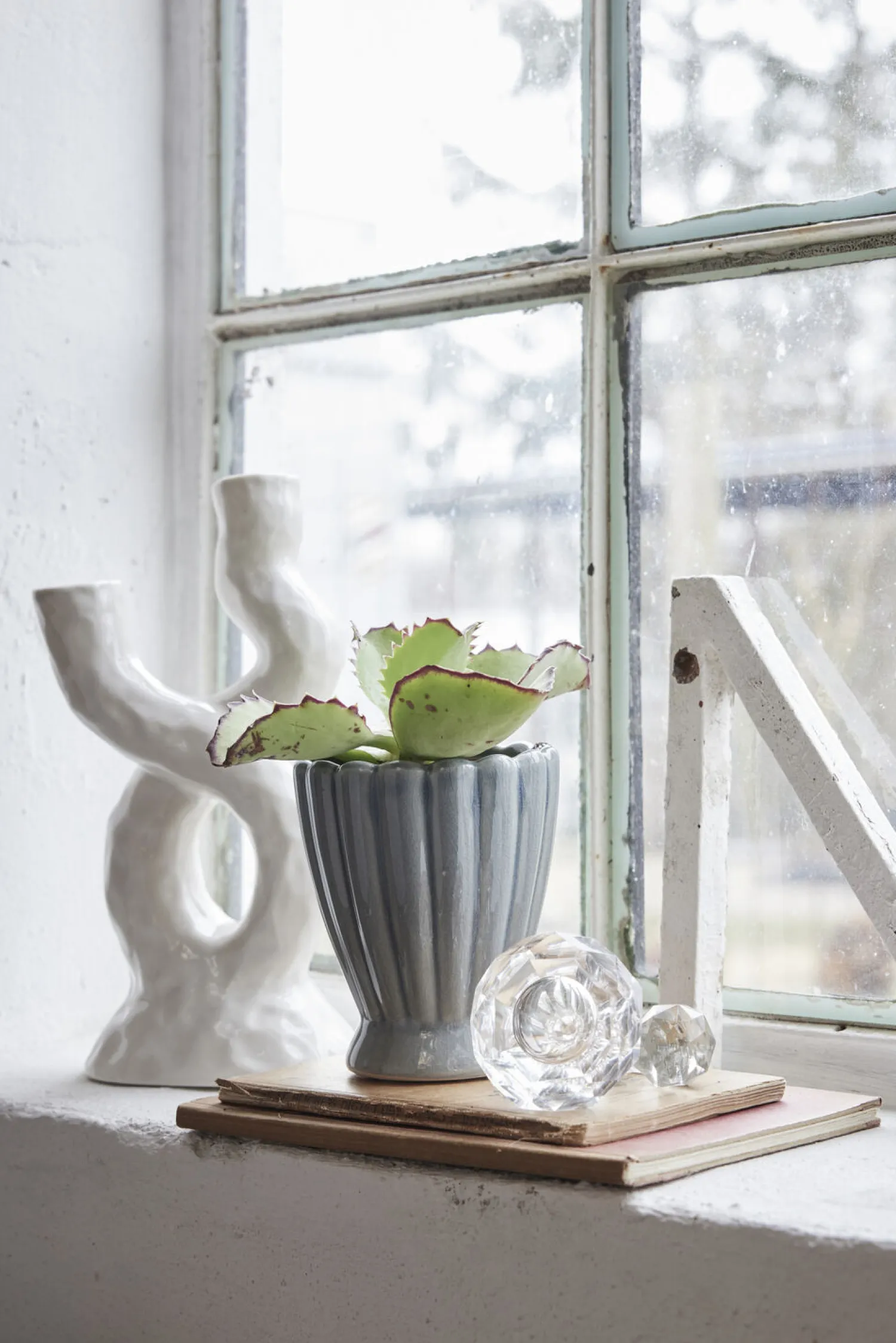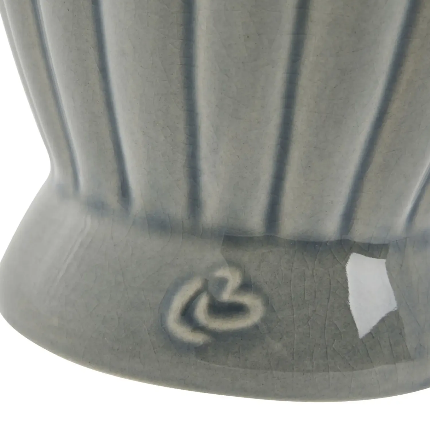 Lene Bjerre – Shenella skjuler i blå er et stykke tidløst design med en karakteristisk lodret ribbet struktur og et diskret logo nær bunden. Denne keramiske skjuler er både funktionel og dekorativ og passer ind i forskellige indretningsstile.