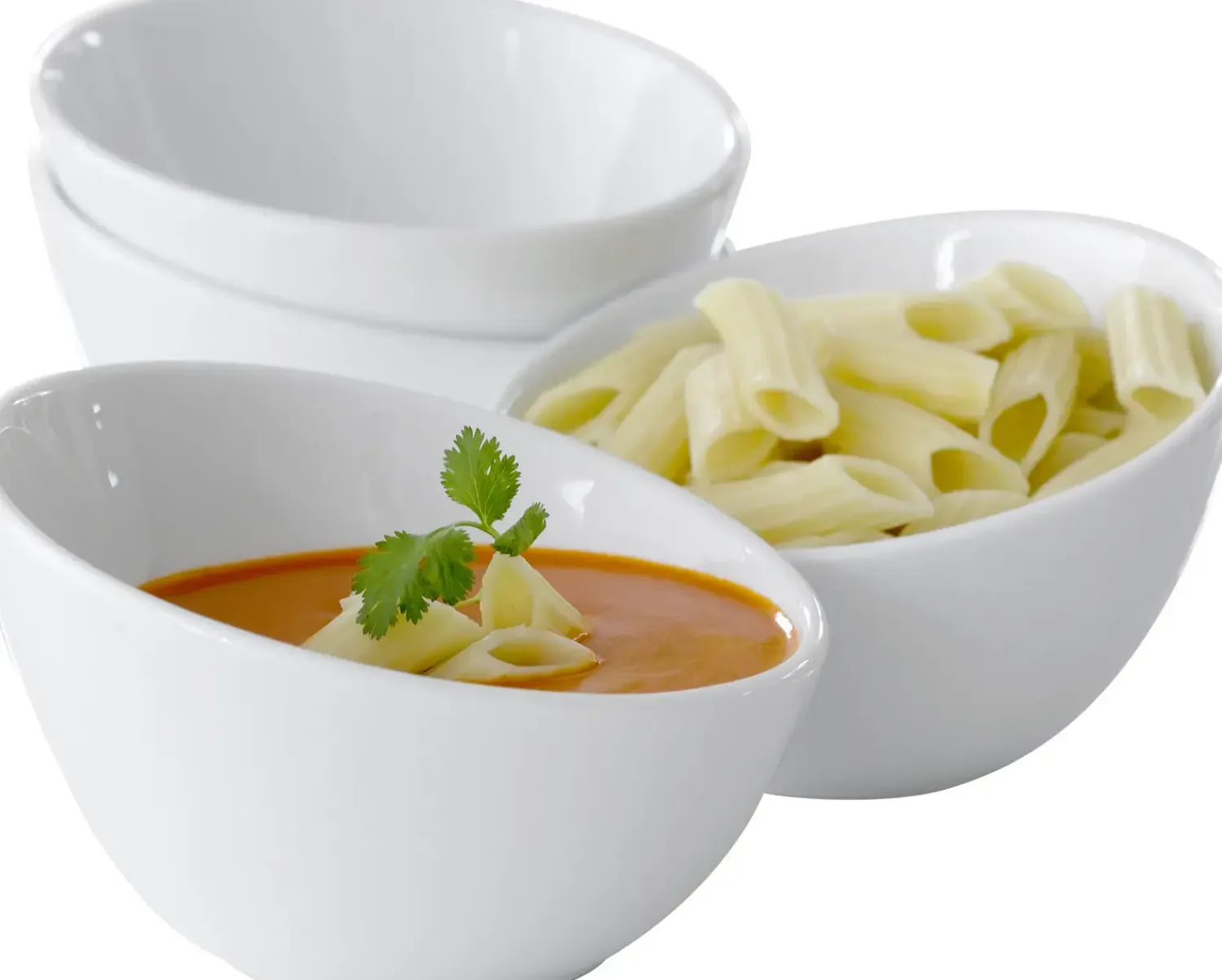 Den asymmetriske form gør skålene særligt velegnede til forskellige serveringsformål. Du kan bruge dem til alt fra snacks og salater til supper og desserter. Den hvide farve passer naturligt ind i enhver borddækning.