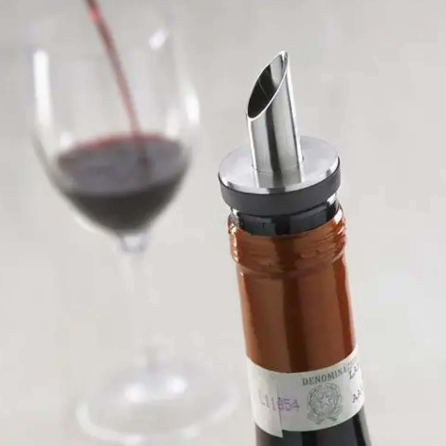 Denne skænkeprop med skrå hældetud giver dig præcis kontrol over vinserveringen. Den forhindrer spild og dryp, så du kan servere vin uden at bekymre dig om pletter på dugen eller flasken.