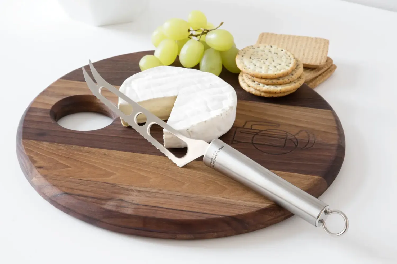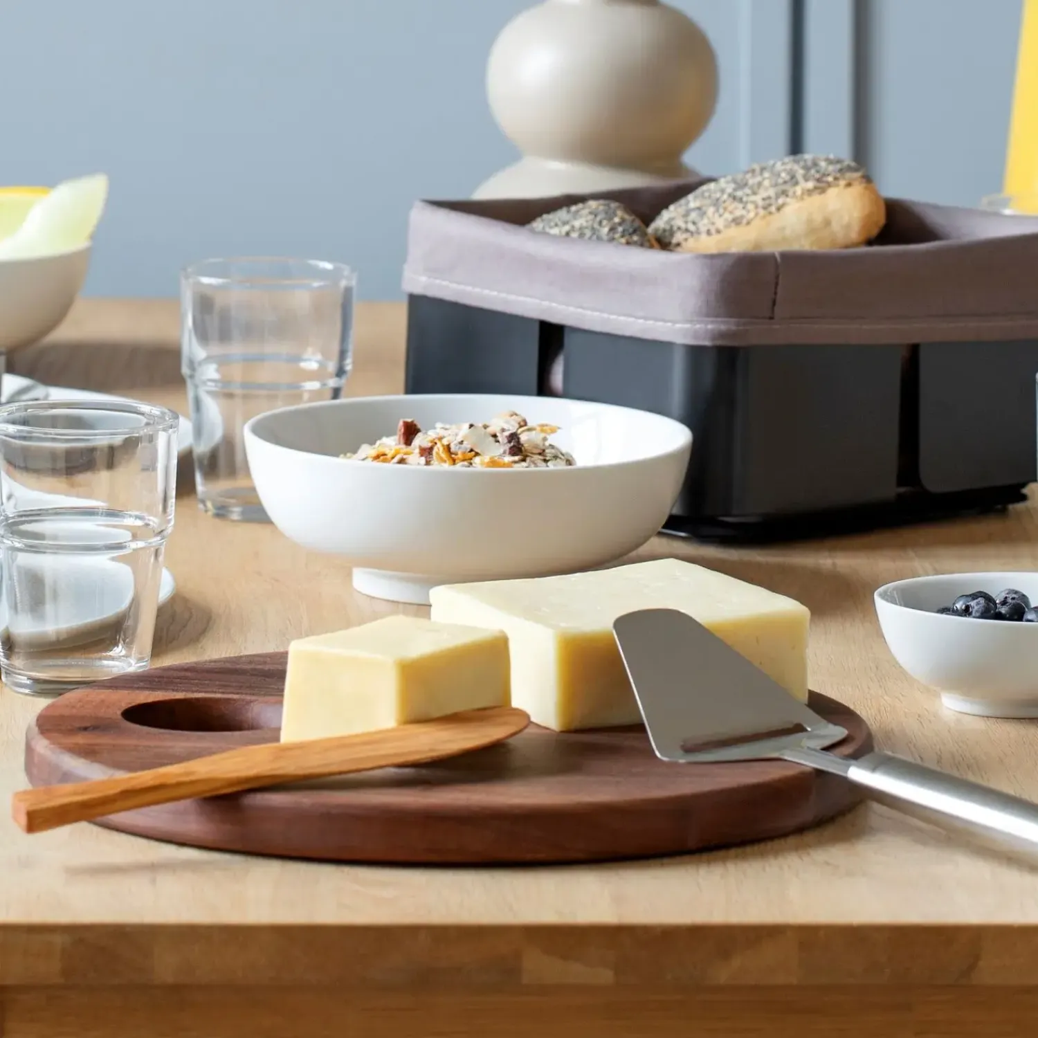 Dette runde skærebræt i valnøddetræ kombinerer naturlige åretegninger med praktisk anvendelighed. Med en diameter på 28 centimeter får du god plads til både tilberedning og servering af dine retter.