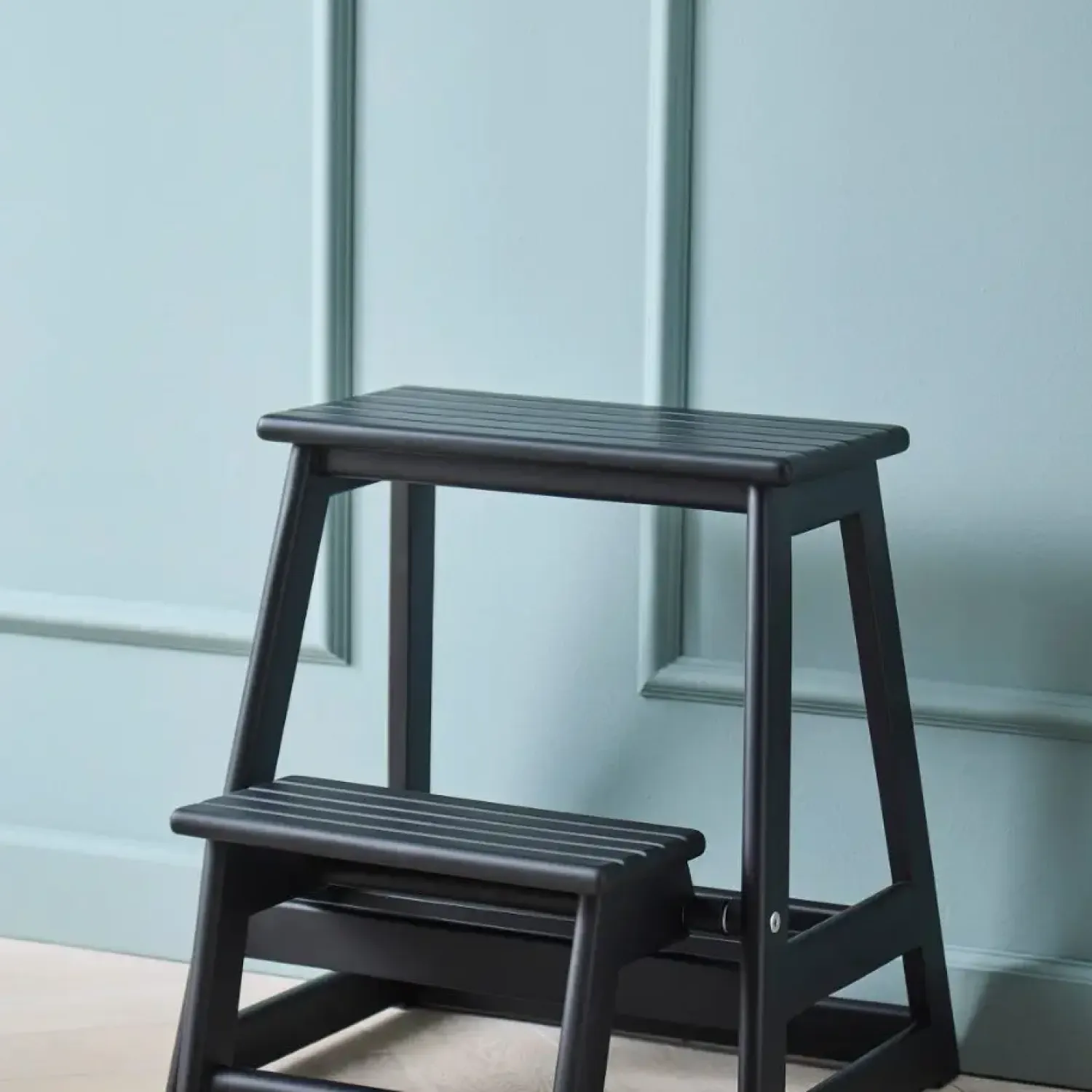 Skala trappestigen er fremstillet af holdbart mahogni, hvilket sikrer en robust konstruktion. Den sorte, matte PU-maling giver stigen et ensartet udseende. Med to trin tilbyder den en stabil platform til dine daglige gøremål, såsom at nå højere hylder eller udføre lettere vedligeholdelsesopgaver.