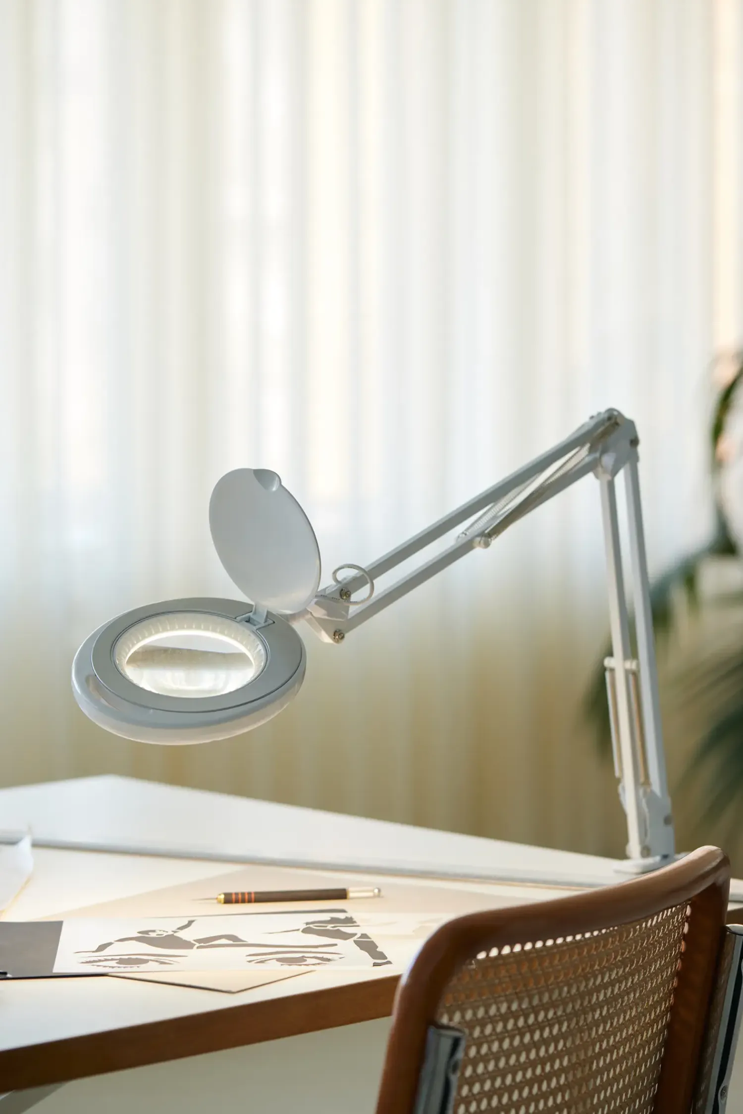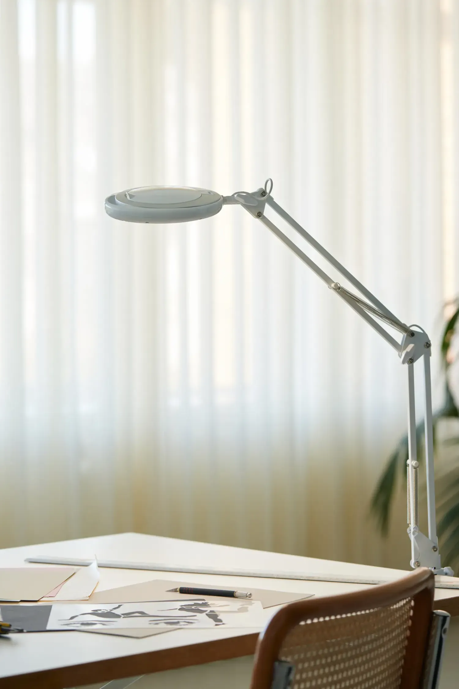 Den justerbare arm giver dig mulighed for at positionere lyset præcist efter dine behov. Armens fleksibilitet tillader dig at rette lyset mod forskellige områder af dit arbejdsbord. Klemmebasen er designet til at fastgøre lampen sikkert på bordkanten, hvilket sparer plads på skrivebordet og giver stabilitet. Lampens højde på 50 cm og diameter på 21,5 cm gør den velegnet til forskellige bordstørrelser og arbejdsopgaver.