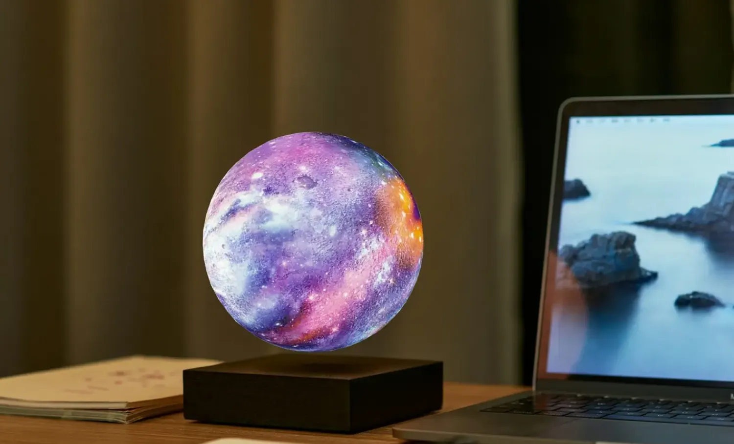 Denne bordlampe fra Gingko kombinerer funktionel belysning med et kunstnerisk udtryk. Den sfæriske form giver et moderne look, der passer ind i forskellige indretningsstile – fra minimalistiske kontorer til hyggelige stuer. Det farverige galaksemønster skaber en stemningsfuld atmosfære og fungerer som et dekorativt element på dit bord.