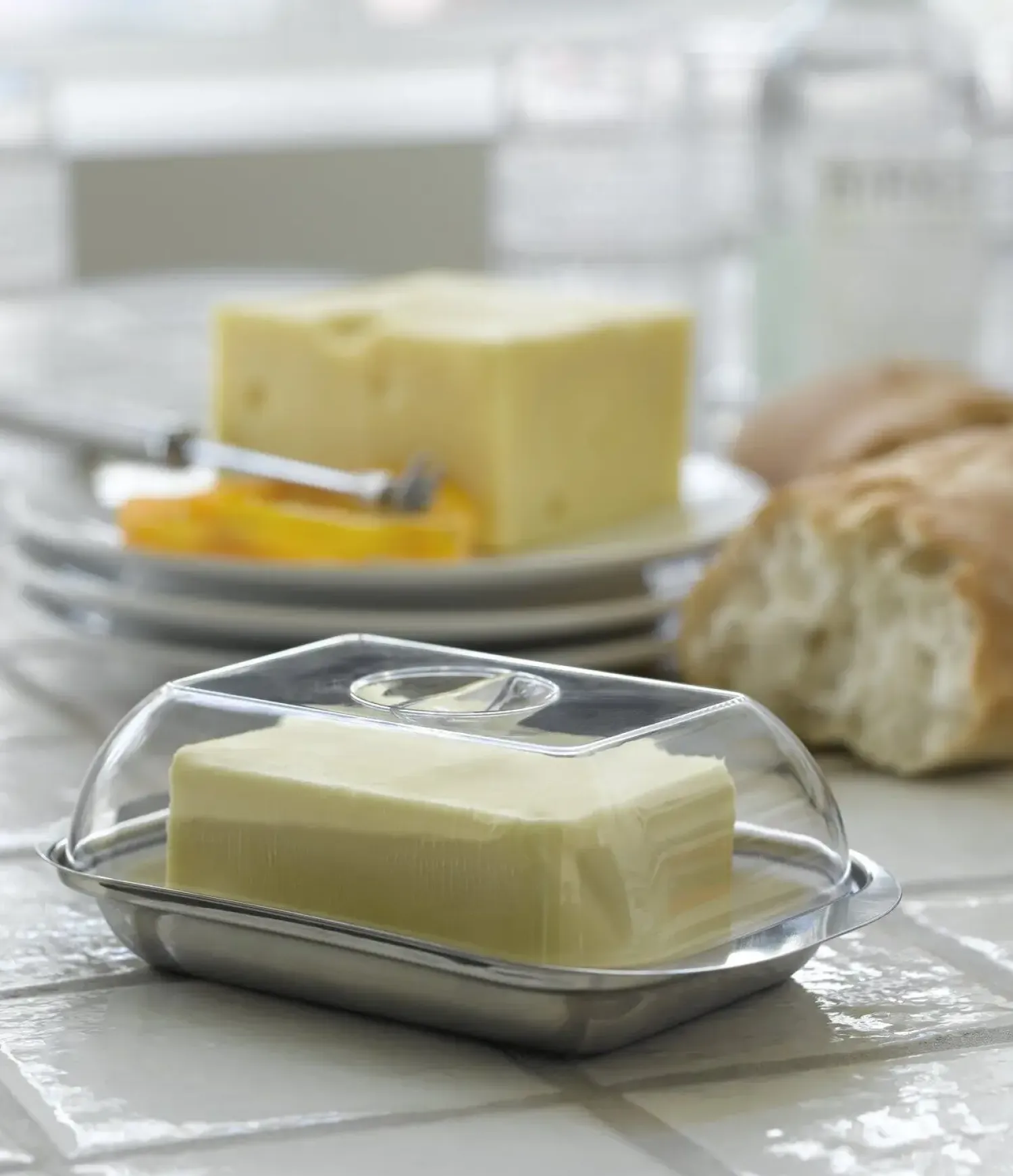 Den børstede overflade på rustfrit stål er modstandsdygtig over for fingeraftryk og ridser. Du slipper derfor for konstant vedligeholdelse og kan nemt holde smørboksen pæn, selv ved daglig brug i et travlt køkken.