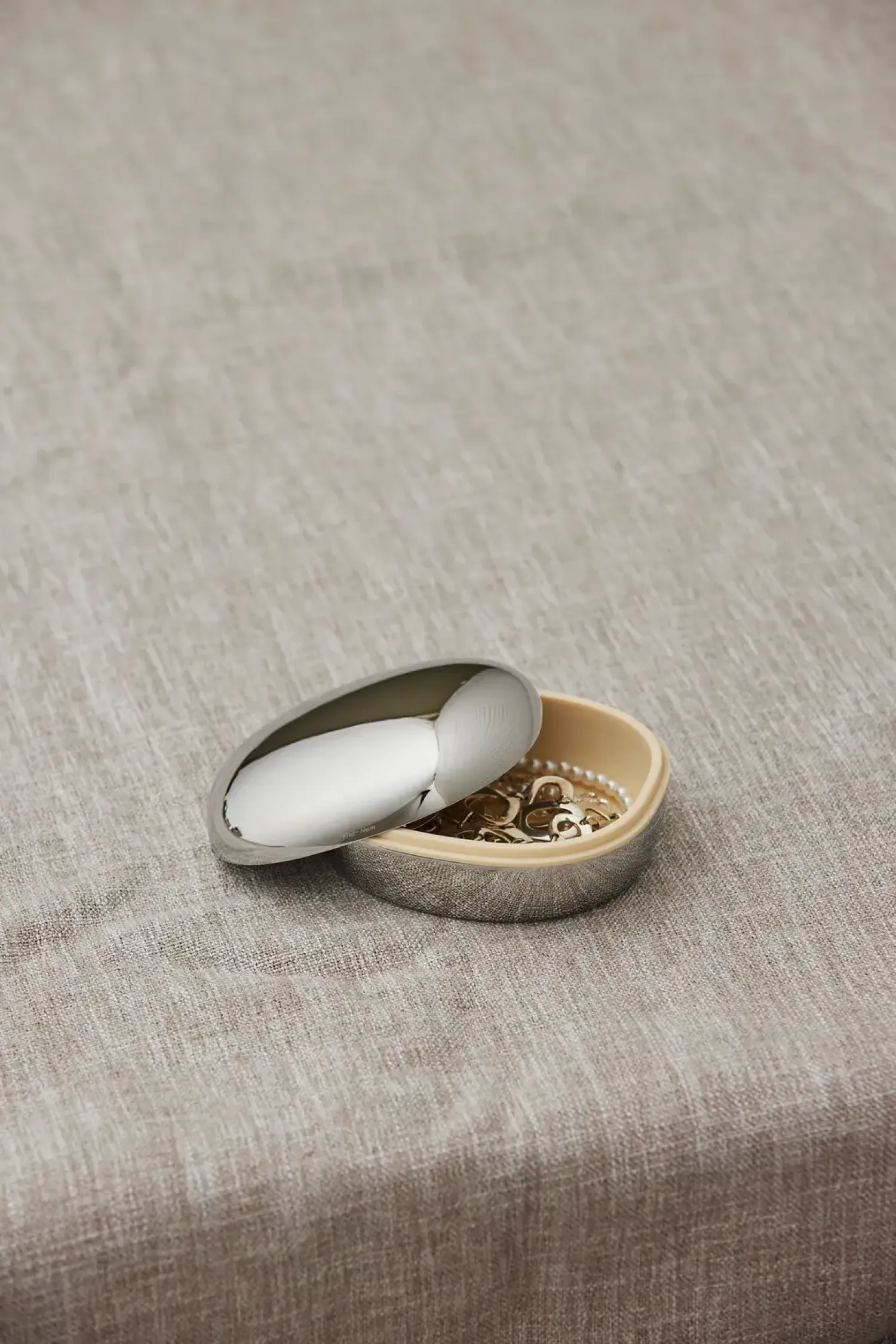 Dette smykkeskrin er formet som Piet Heins ikoniske superellipse og kombinerer tidløst design med praktisk funktion. Det blanke eller børstede stål giver et stilrent og sofistikeret udtryk, mens det bløde indlæg beskytter dine smykker.