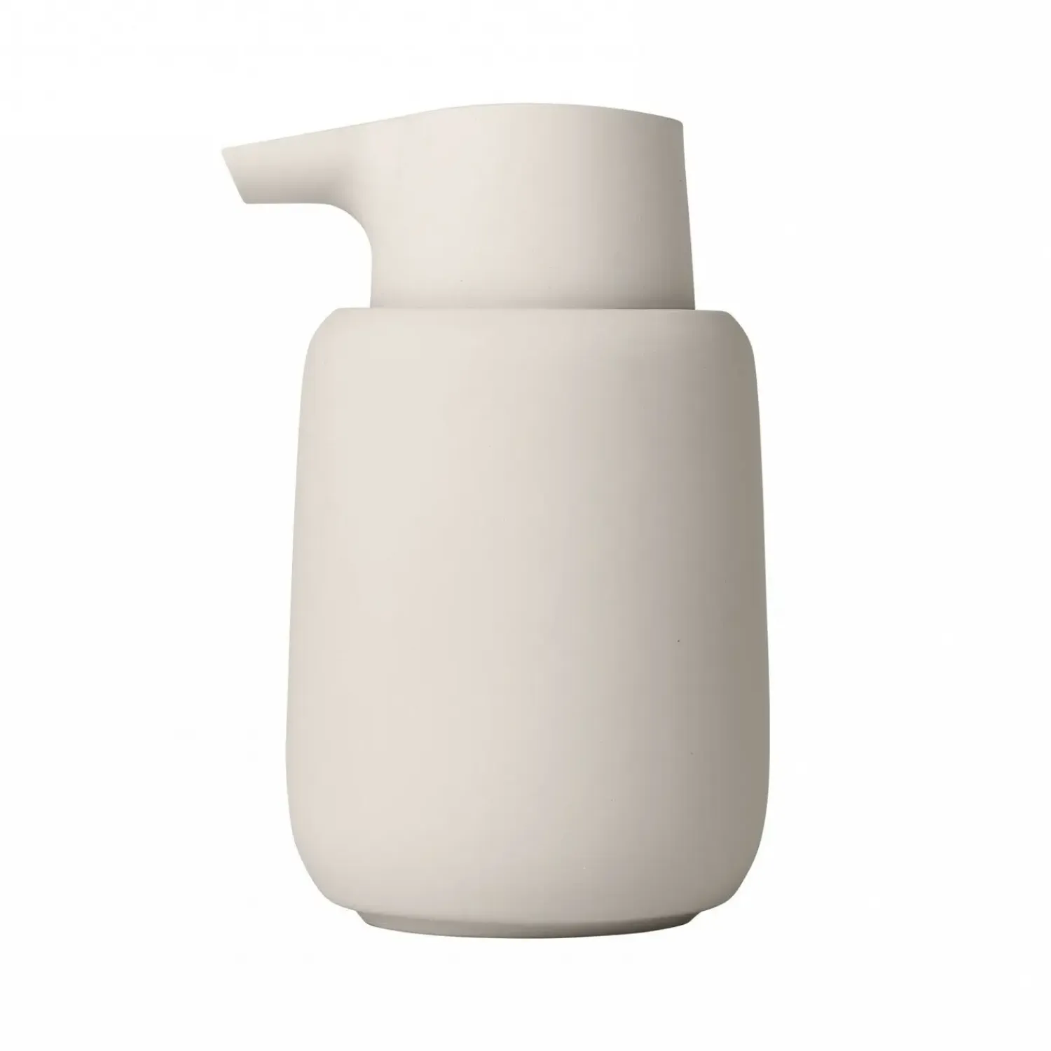 En designopgradering til dit toilet. SONO sæbedispenseren i den drømmeagtige beige ton Moonbeam har kapacitet til 250 ml flydende sæbe. Den optimale mængde sæbe kan dispenseres ved at lægge et let tryk på det indvendige pumpehoved. Den matte, bløde overflade i en blød, lys beige nuance føles behagelig at røre ved. For at genopfylde sæben skal du blot trække dispenserhovedet af med den integrerede forsegling og skubbe det ind igen, når det er fyldt. Fås i fem ekstra farver.