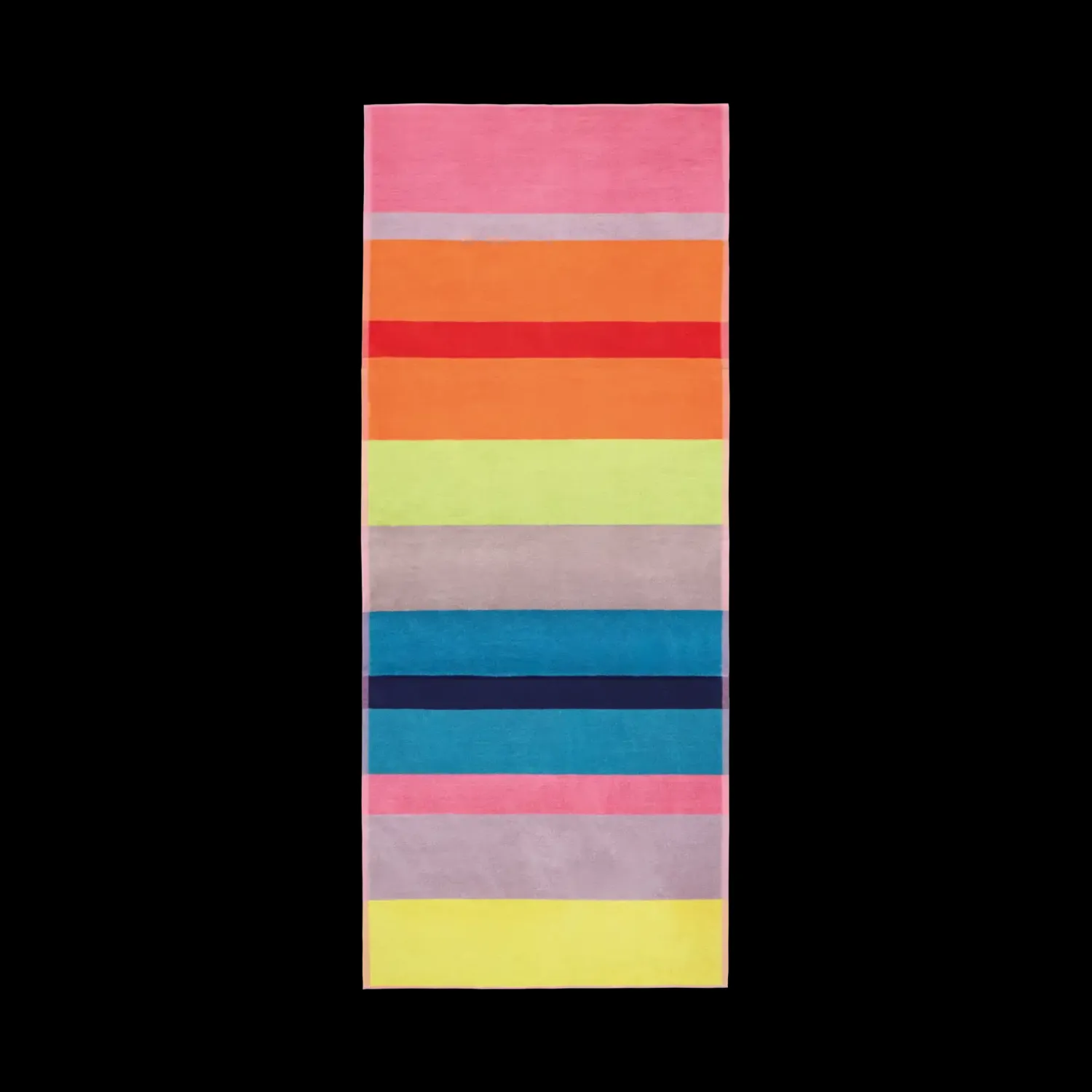 Sorbetto badehåndklædet præsenterer et livligt stribet mønster, der tilføjer farve til badeværelset. Dette håndklæde kombinerer funktionalitet med et iøjnefaldende design.