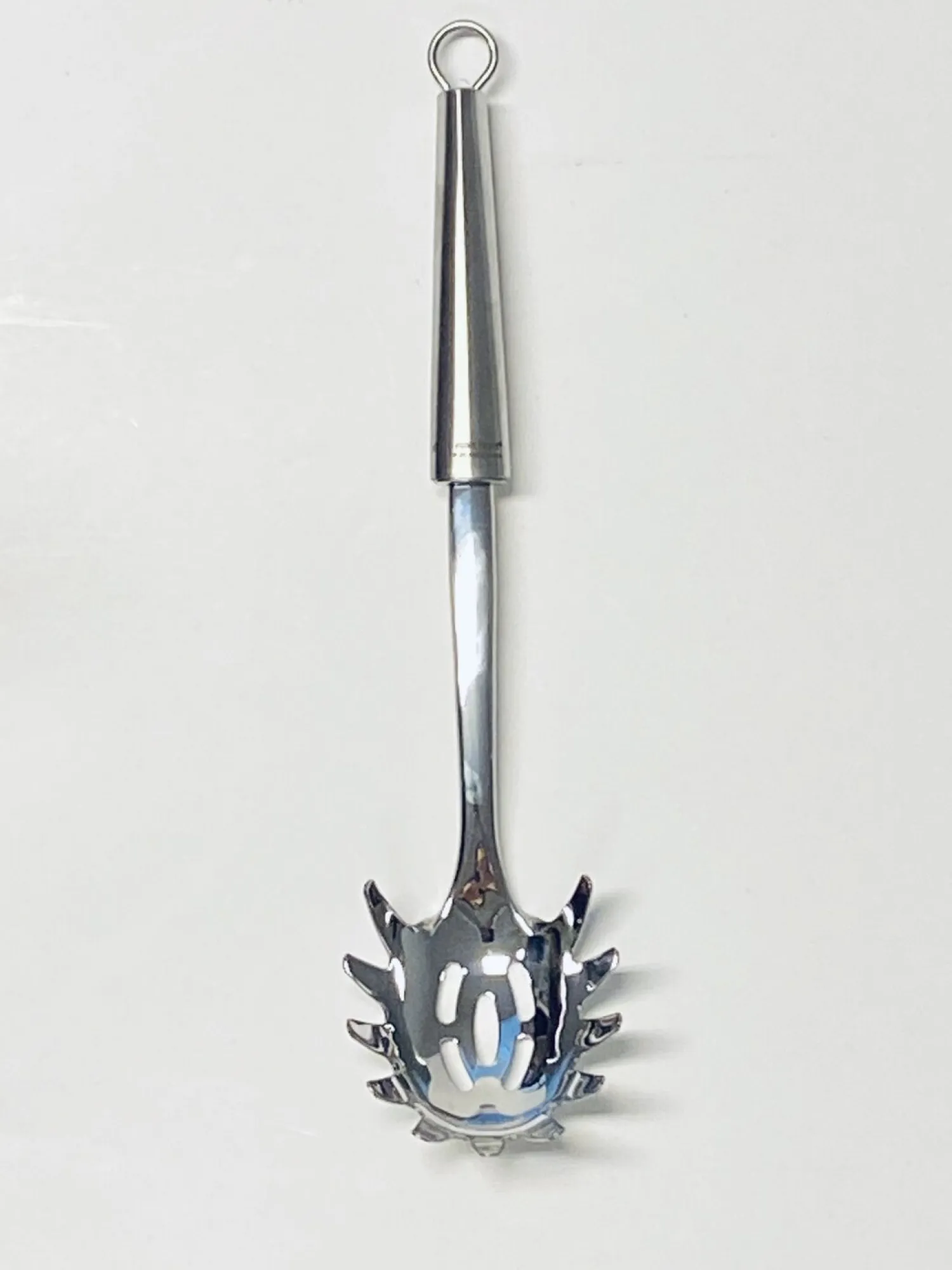 Det polerede rustfrie stål sikrer, at spaghettiskeen holder sig flot og funktionel gennem daglig brug. Materialet er modstandsdygtigt over for rust og tåler maskinopvask, hvilket gør den praktisk i det travle køkken.