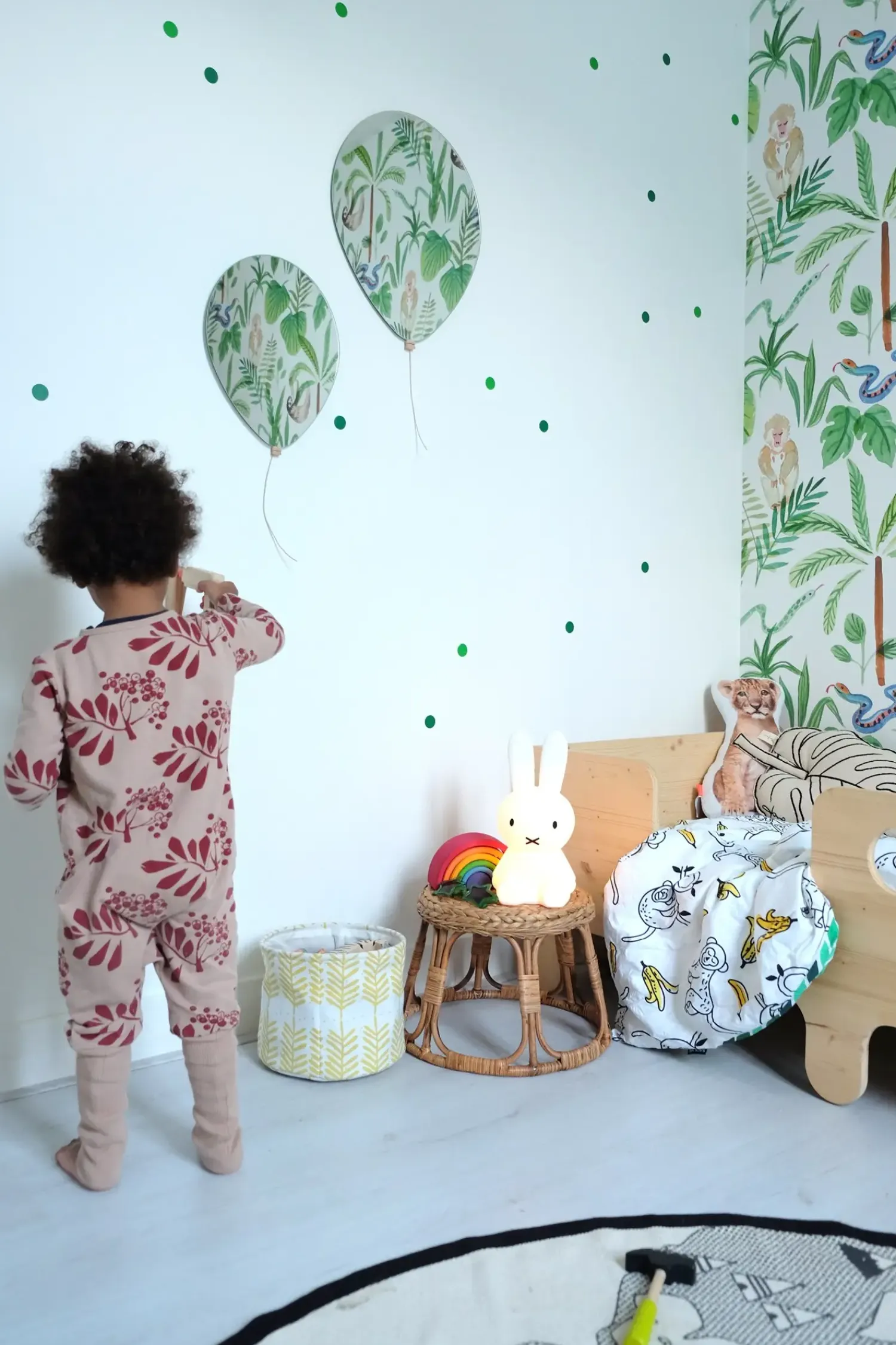 Balloon spejlet er et legende og dekorativt element inspireret af barndommen. Det smalle design gør det nemt at placere i hvilket som helst rum der trænger til et pift personlighed og humor. Det er dog oplagt at hænge på børneværelset, hvor de små poder kan drømme sig helt op i skuerne med de fine balloner.
