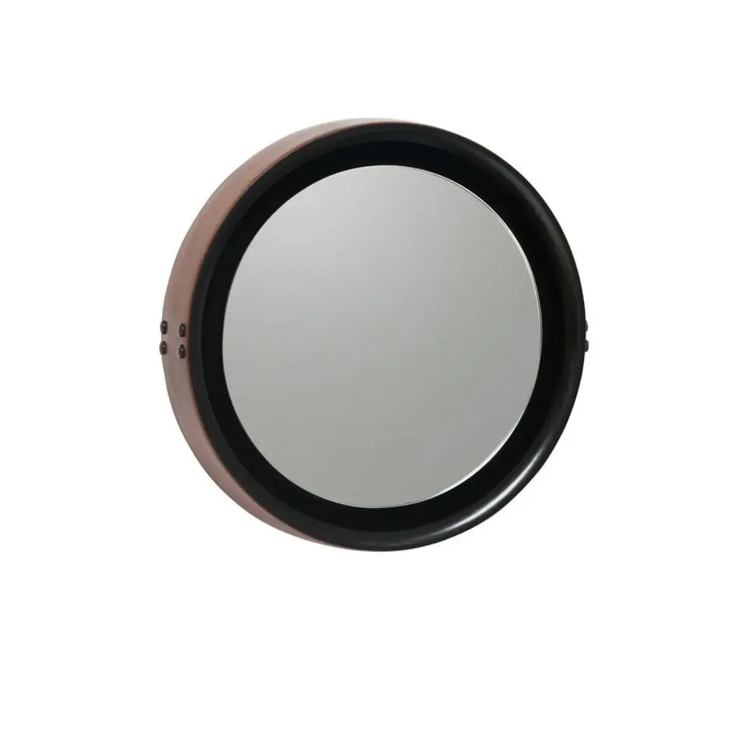 Der er en brun læderrem rundt om spejlet, som giver spejlet et rigtig fint look.