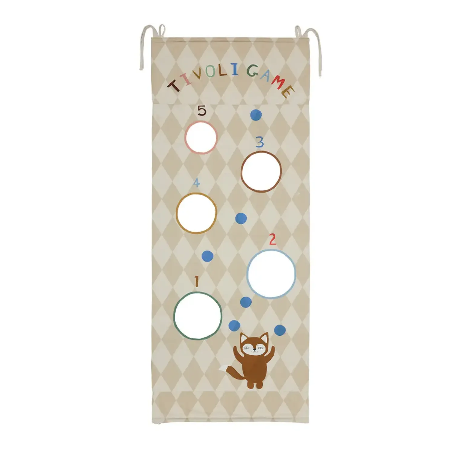 Spillets fulde højde på 192 cm gør det ideelt for både børn og voksne. Du kan træne dine kastevner alene eller udfordre familie og venner til en sjov konkurrence. Det charmerende design med vaskebjørnen skaber en hyggelig stemning.
