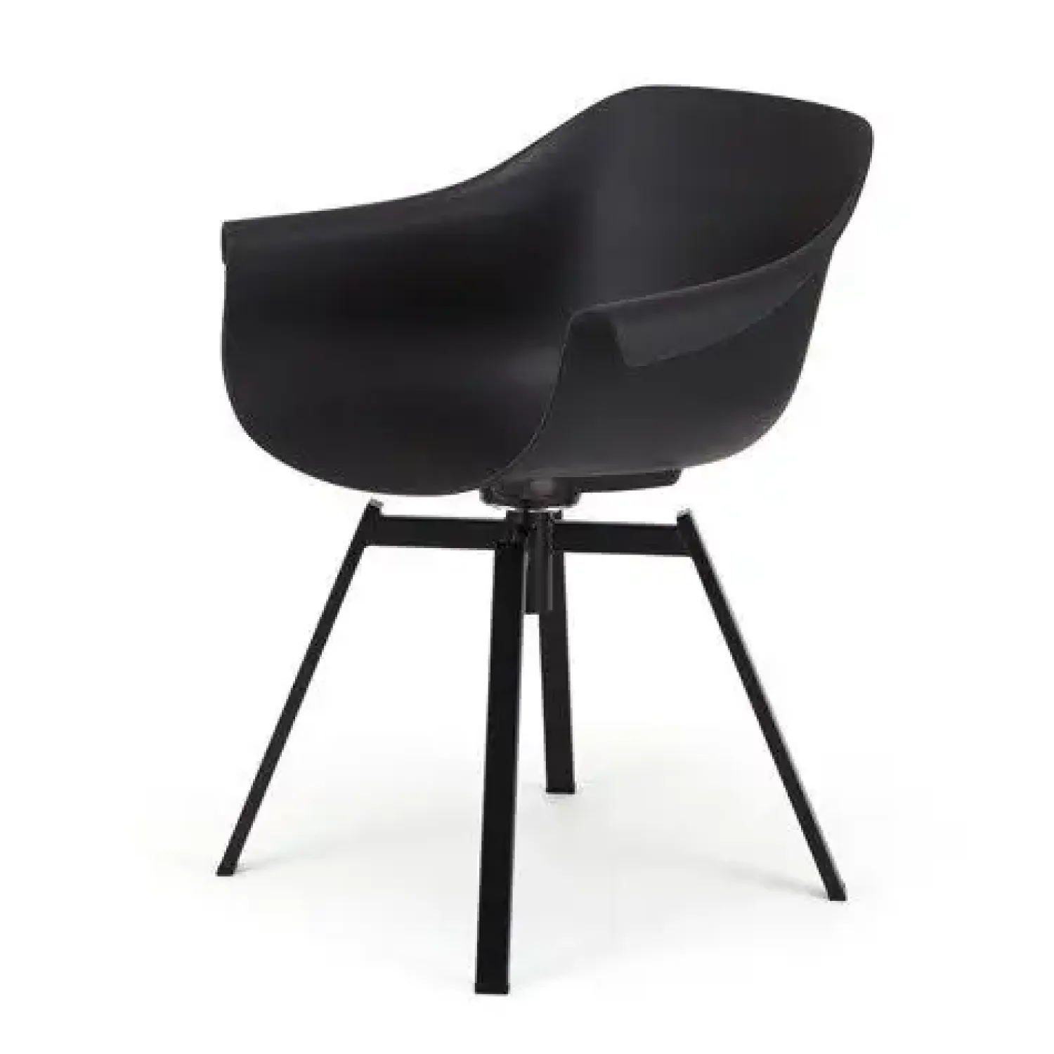 MUUBS – Spisebordsstol – Swiwel – Sorte ben og sort sæde er en funktionel tilføjelse til spisestuen. Denne stol har en drejefunktion og integrerede armlæn, der giver mulighed for bevægelse og støtte under måltidet.