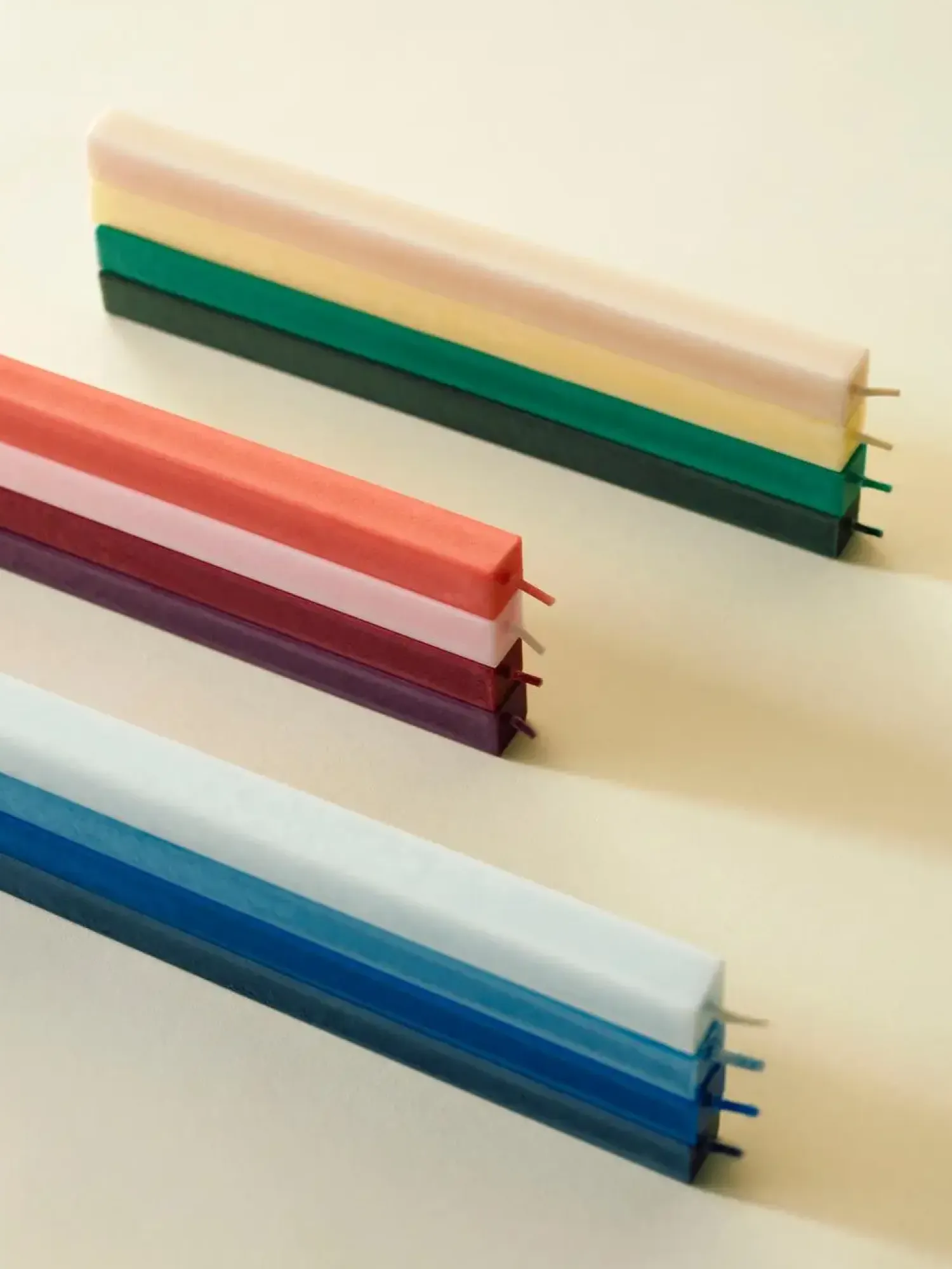 Med deres kvadratiske form adskiller disse lys sig fra almindelige runde stearinlys. Den unikke form giver et moderne udtryk, mens de forskellige blå nuancer tilføjer dybde og variation til din indretning.