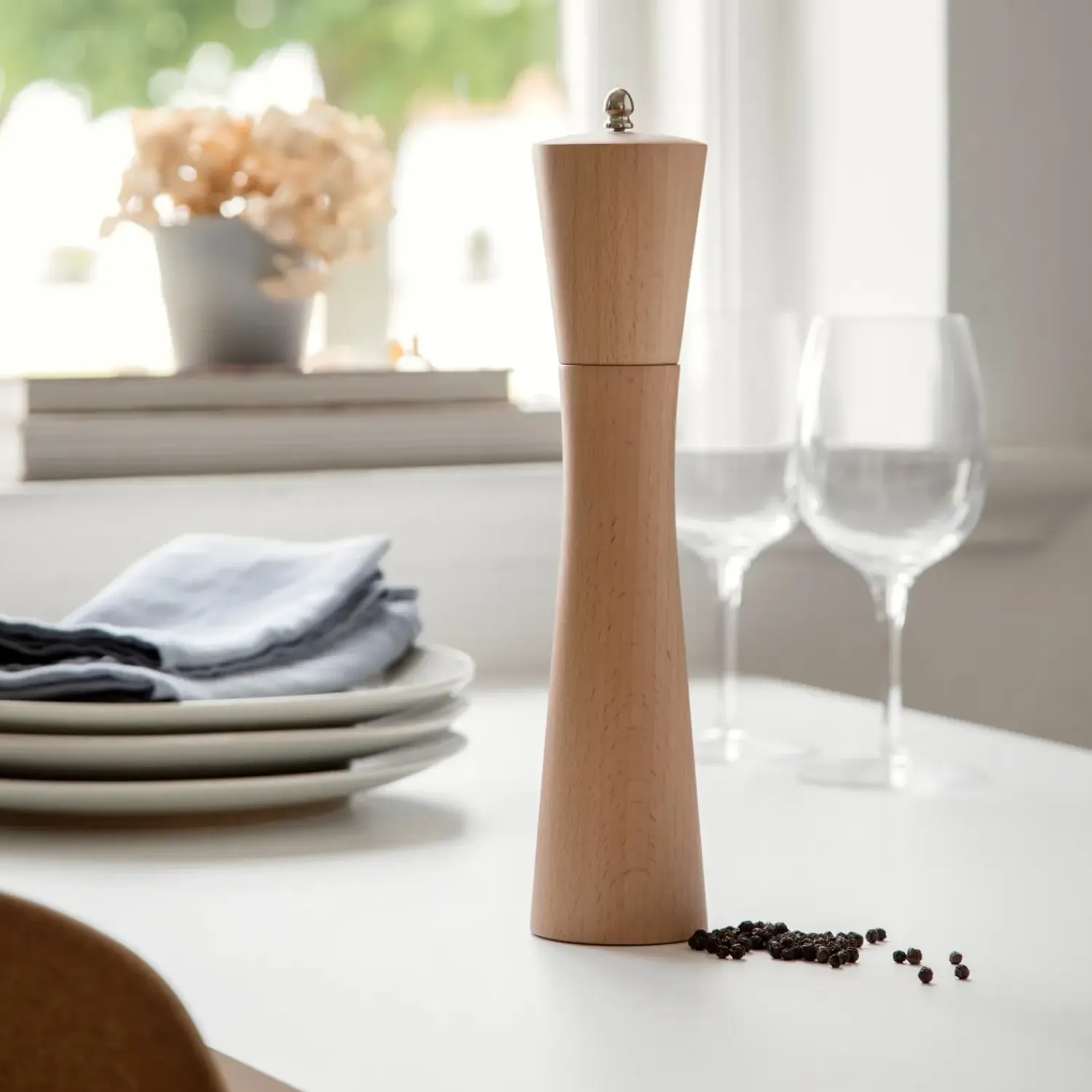 Med sine slanke proportioner og det tidløse bøgetræ bliver kværnen hurtigt en naturlig del af dit køkken. Den høje 28 cm konstruktion giver god rækkevidde og sikrer, at du nemt kan krydre selv større serveringsfade og gryder.