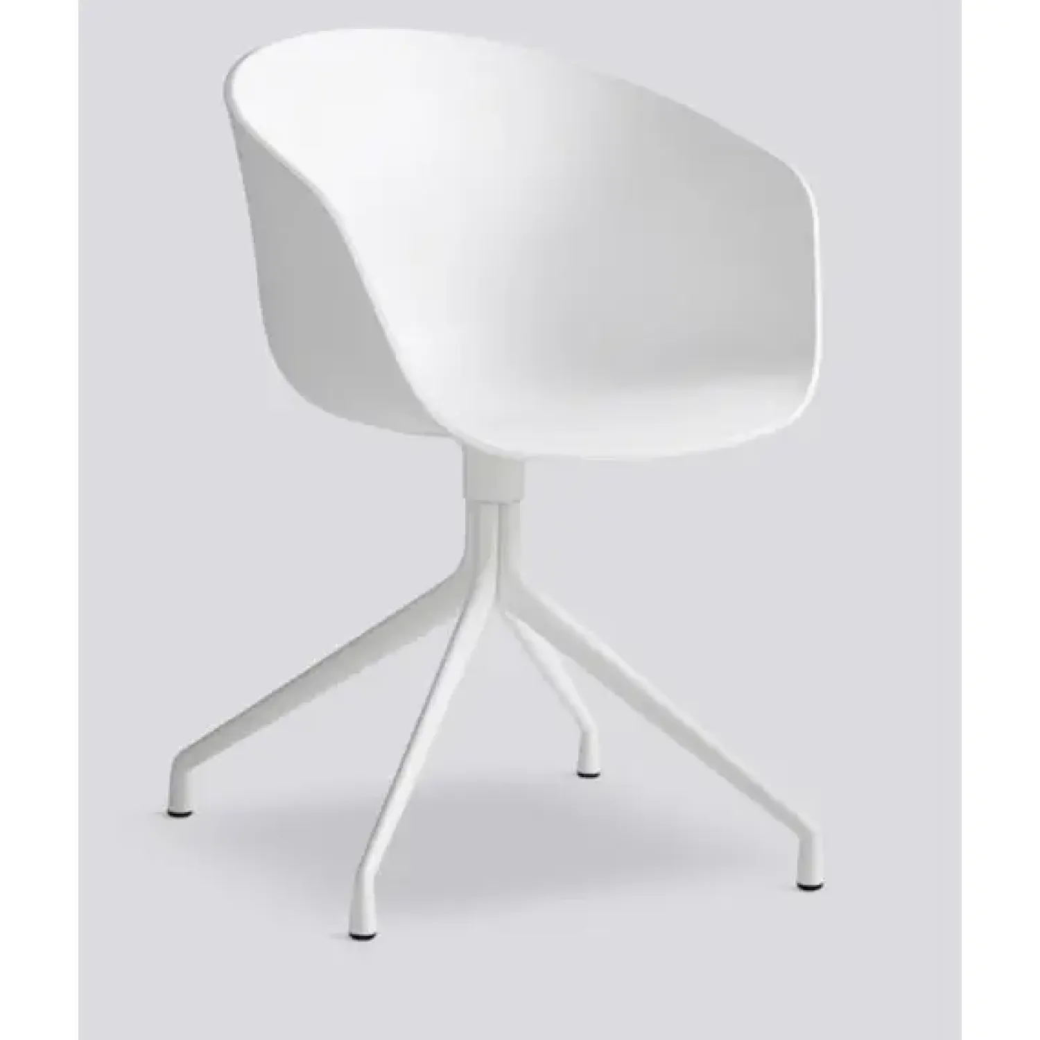 Denne spisebordsstol fra HAY kombinerer et hvidt skalformet sæde med praktiske armlæn og et drejestel. Med målene B59 x D52 x H79 cm passer stolen naturligt ind ved spisebordet eller på kontoret.