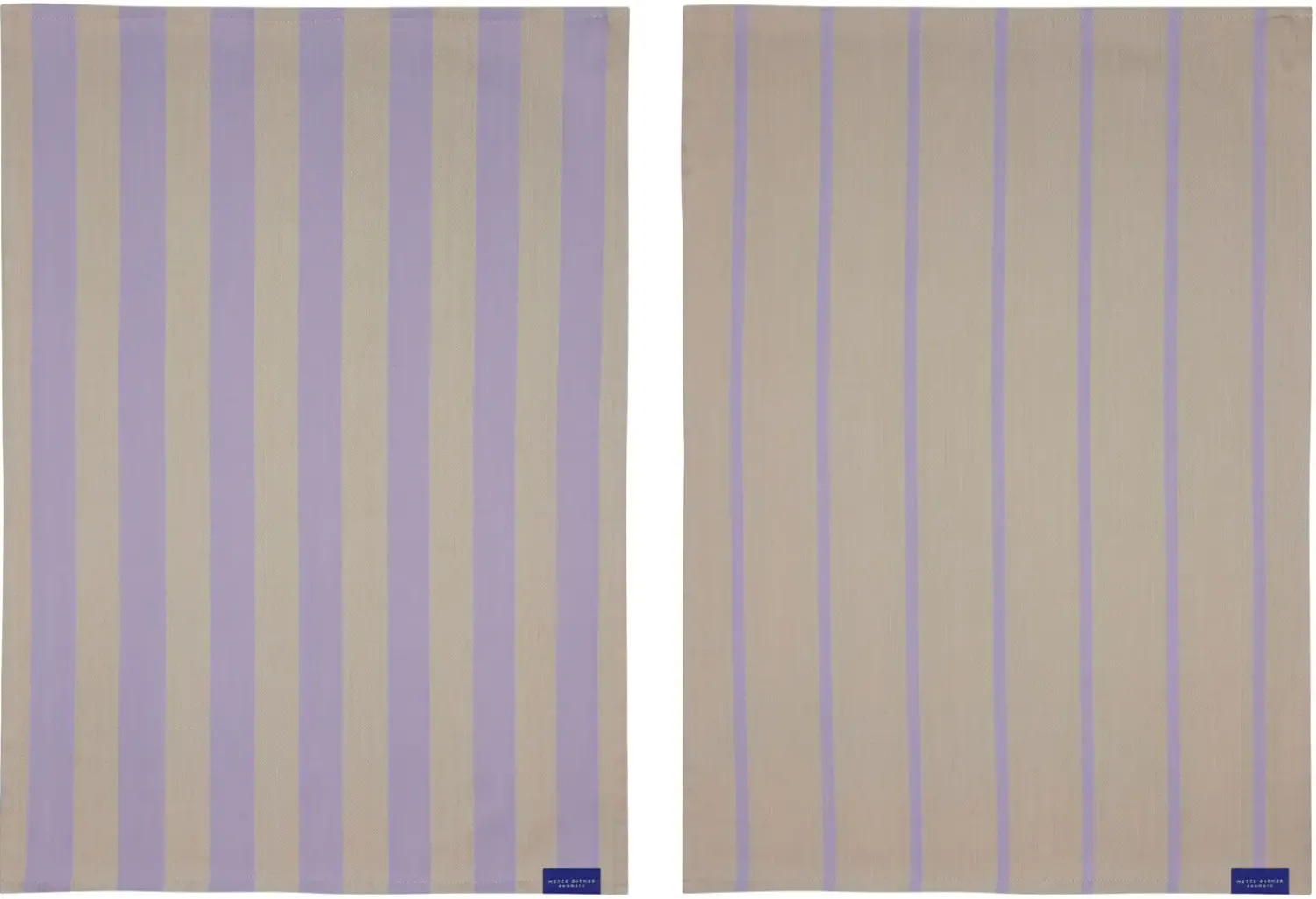 Leg med farverne med de smukke STRIPES-viskestykker fra Mette Ditmer. Dette farverige sæt fra Mette Ditmer indeholder to unikke designs – det ene med tydelige, brede striber og det andet med delikate, smalle striber. Det ikoniske stribemønster i sand og lilla tilfører køkkenet et dynamisk touch, forstærket af Mette Ditmers karakteristiske twist med en kontrastfuld kobolt label og strop.