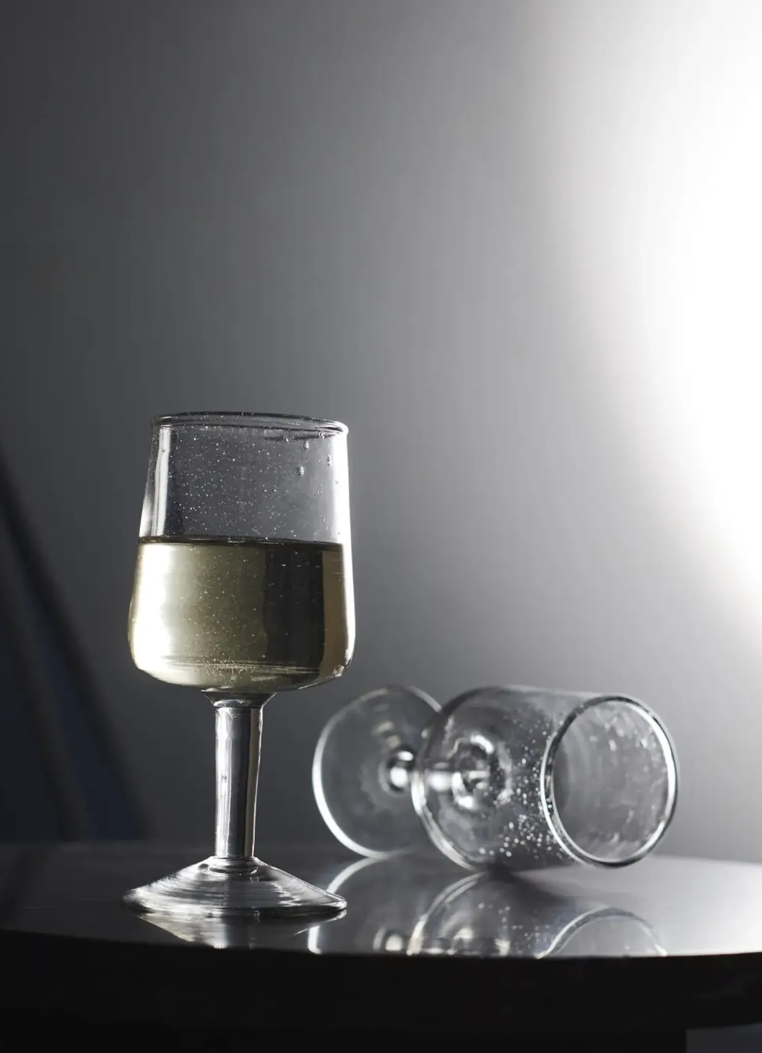 Det stilfulde Suiro hvidvinsglas er behagelig i hænderne og er designet til daglig brug med både funktionalitet og æstetik i fokus. Glassene er mundblæste og fremstillet af 100% genbrugsglas, i et karakteristisk og robust design, der giver et løft til enhver borddækning. Suiro serien er opkaldt efter de finurlige bobler i glasset, der ligner små dråber af vand, skabt af små luftbobler mellem lagene i glasset, der gør hvert glas unik og sikrer, at ikke to glas er helt identiske. Vinglassene kan bruges med den tilhørende vandkaraffel på ethvert stilfuldt middagsbord.Hvert enkelt glas i Suiro serien er unikt i forhold til tykkelse og højde, på grund af det genbrugte materiale og den mundblæste proces, og der vil være variationer i udtrykket på boblerne. Tåler opvaskemaskine.Glassene kan indeholde 150 ml.Design: Martina Claesson
