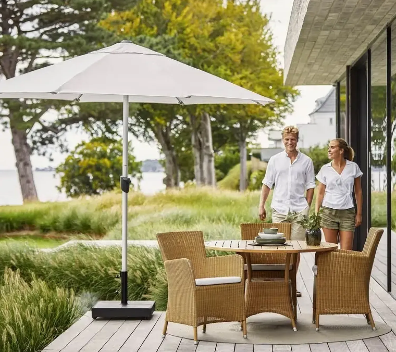 Cane-line – Sunshade parasol med krank er den ideelle tilføjelse til din have eller terrasse. Denne minimalistiske parasol kombinerer funktionalitet med et stilrent design, der passer godt til moderne udendørs miljøer.