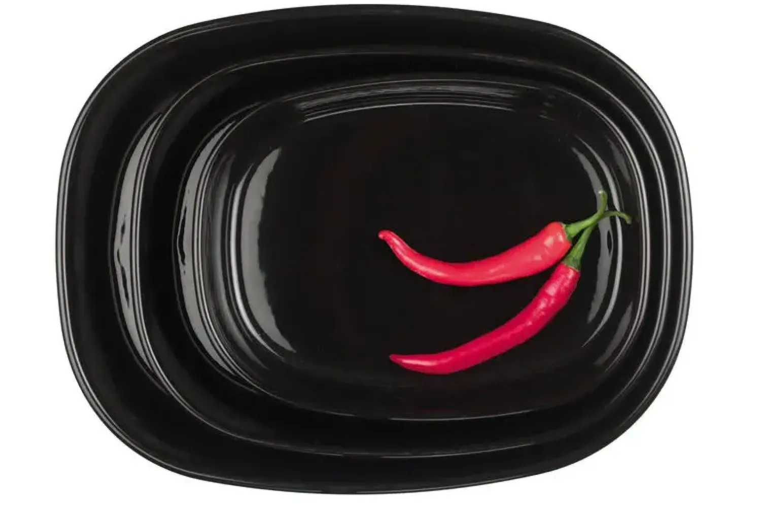 Piet Hein høj superellipse fad i sort porcelæn. Et flot og klassisk fad som kan rumme meget uden at optage for meget plads på bordet. Fadet tåler daglig brug i ovn, mikroovn, fryser og opvaskemaskine. Fås også i hvid.