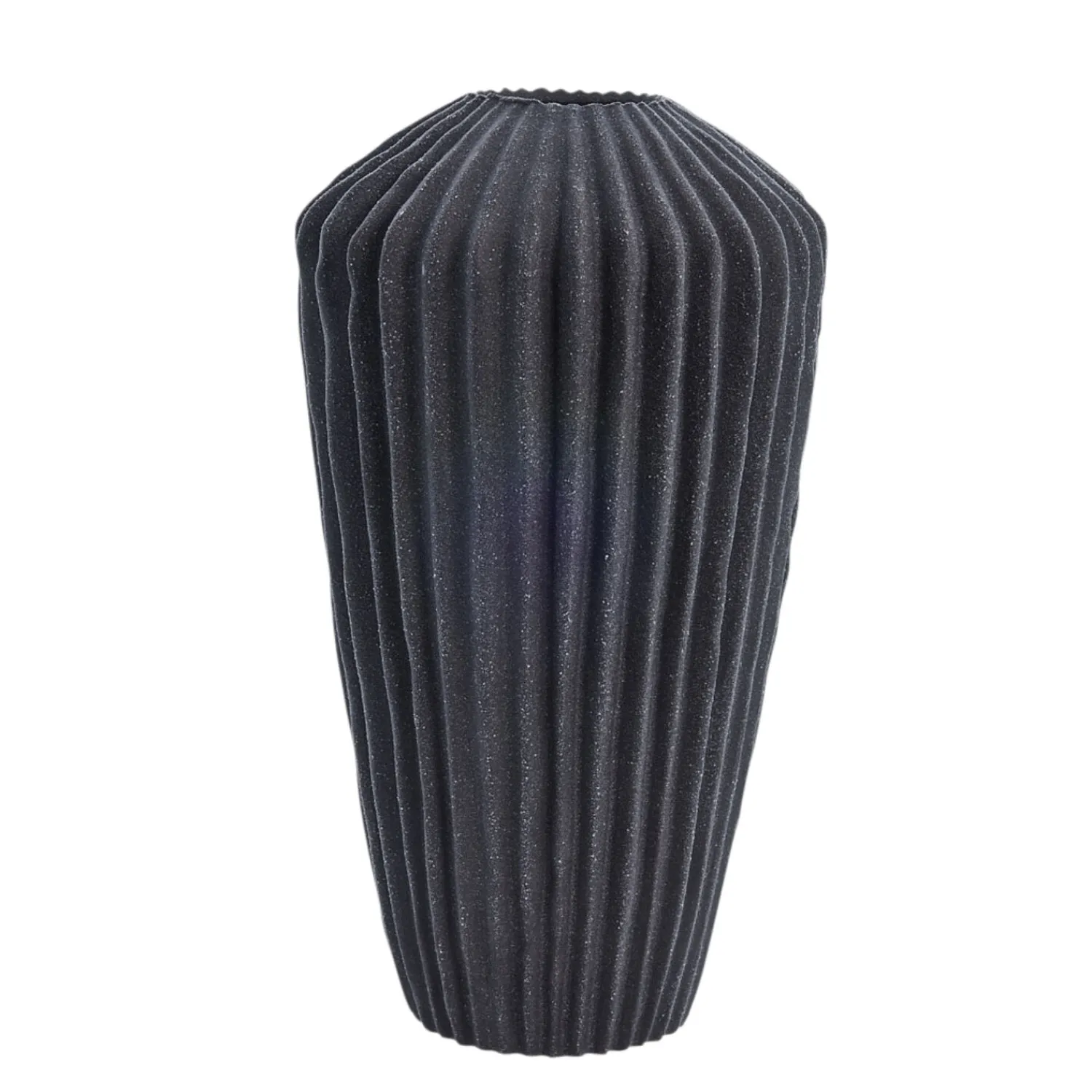 Klassisk mørkegrå farvet keramikvase designet med elegante, subtile riller. Vasen måler L14,5xB14,5xH26,5 cm. og med sit stilrene design er vasen perfekt til at skabe en stilfuld og elegant atmosfære i dit hjem.