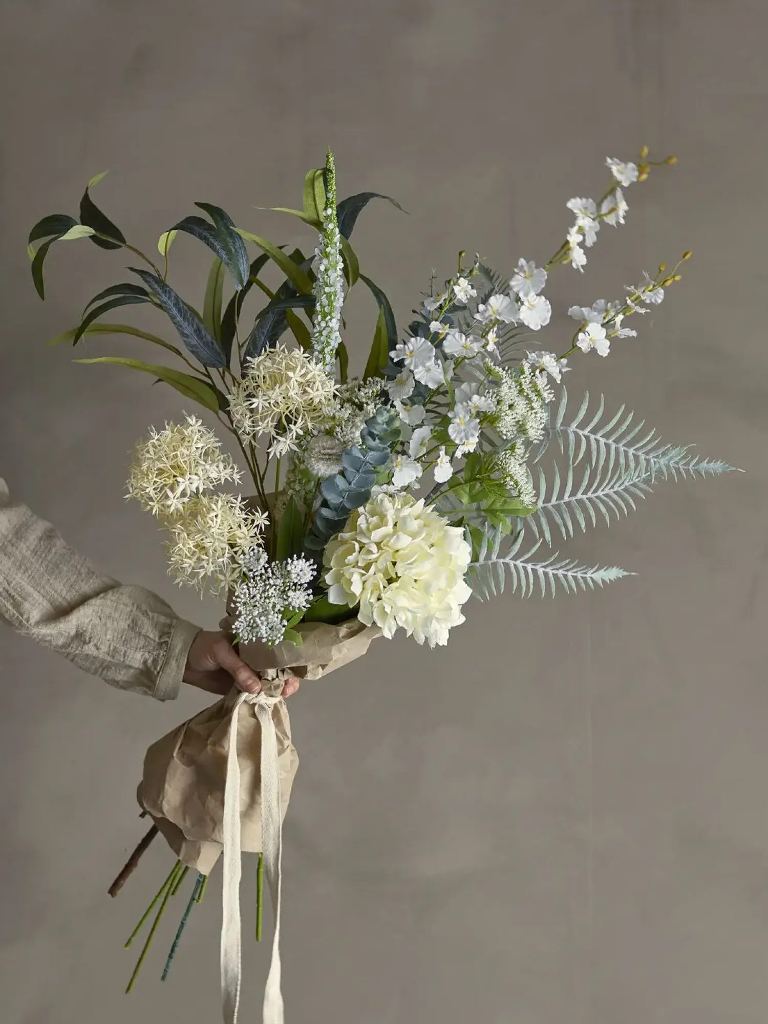 Den hvide farve gør buketten let at integrere i forskellige indretningsstile. Du får glæde af blomsternes skønhed året rundt uden at bekymre dig om vanding eller visne blomster. Plastmaterialet sikrer, at buketten holder sig flot i lang tid.