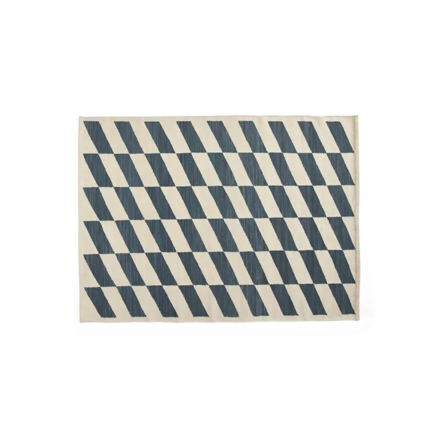 Dette kelimtæppe fra Hay er vævet på charkhas med håndspundet garn. De diagonale striber i blå og cremefarvet giver tæppet et distinkt udseende. Målene på 140 x 200 cm dækker et godt gulvareal.