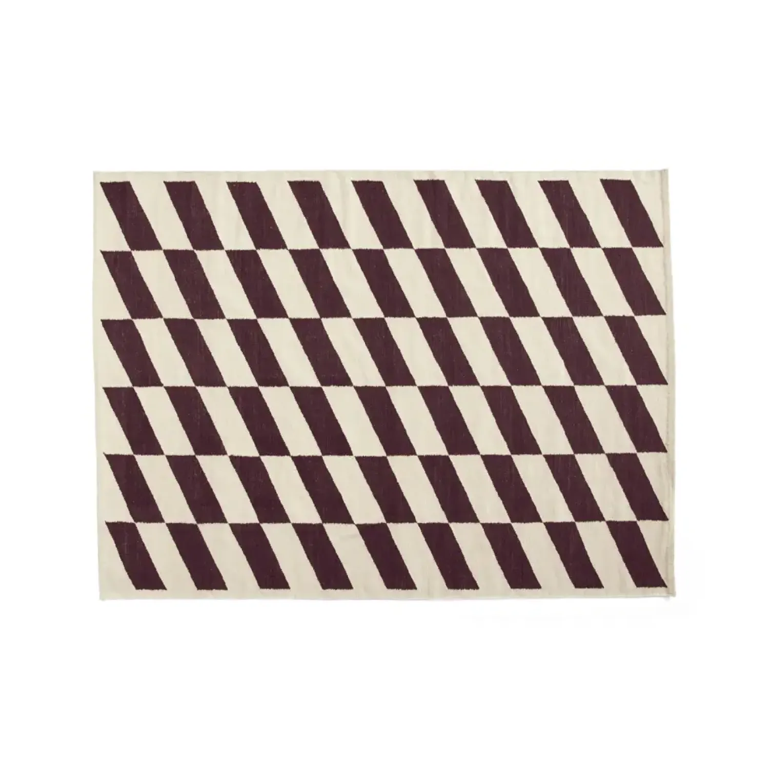 De diagonale striber i mørkerød og beige skaber et dynamisk udtryk i din indretning. Kelimvævningen giver tæppet en særlig tekstur, og de små variationer i det håndlavede design gør hvert tæppe individuelt.