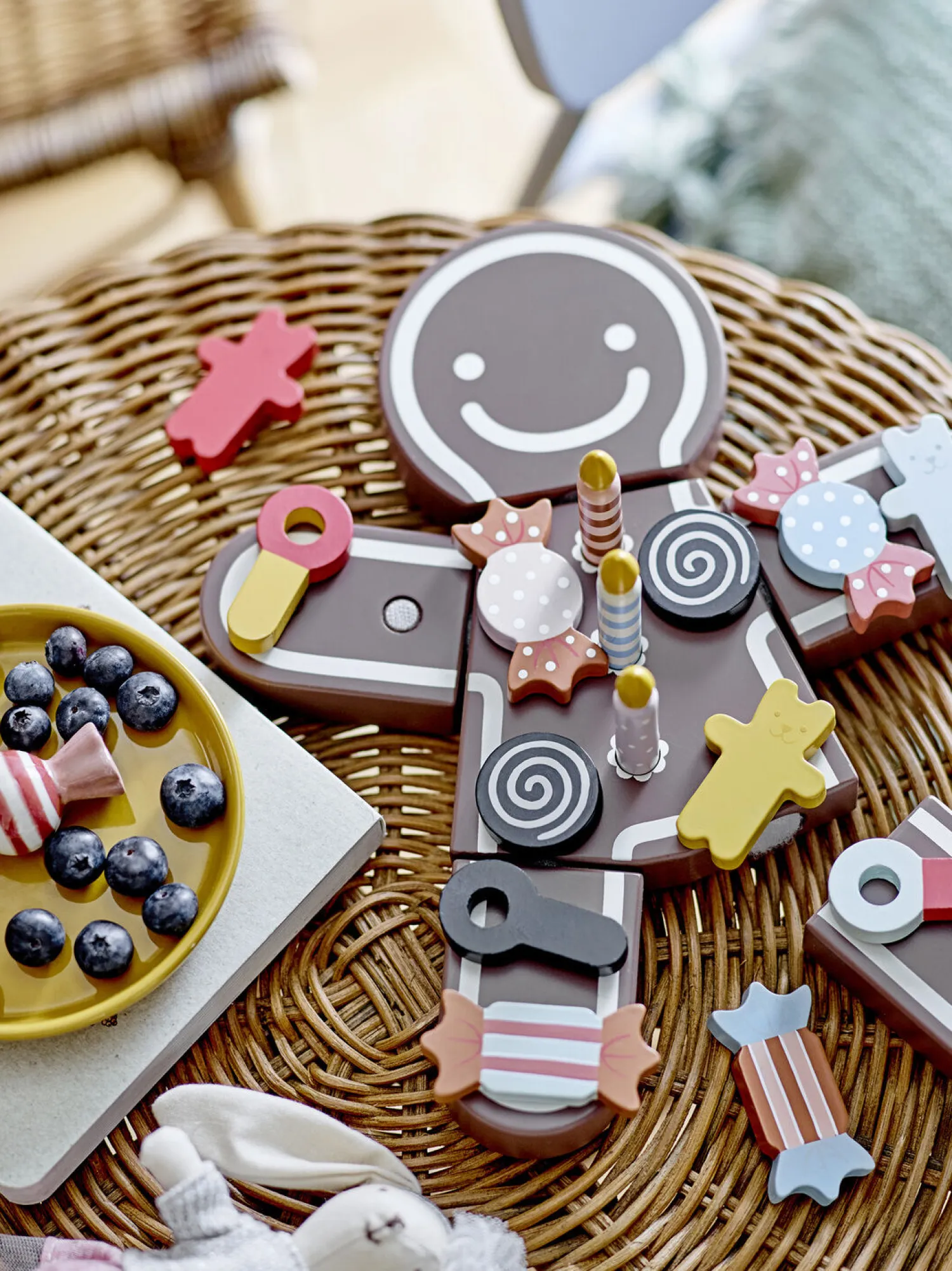 Tala Puslespillet fra Bloomingville MINI er en fødselsdagskage med slik og stearinlys. Kagens hoved, arme og ben fastgøres til kroppen med velcro og kan adskilles. Slik sættes også fast med velcro. Pynt kagen lige som du har lyst og server et stykke af kagen til dine venner! Kommer i en gaveæske, perfekt som gave.