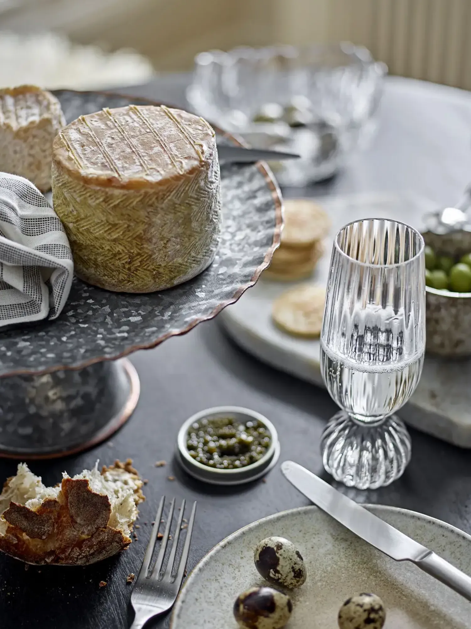 De lodrette ribber løber elegant gennem hele glassets overflade og fortsætter ned i den runde bund. Denne unikke struktur giver ikke bare et sikkert greb, men skaber også et interessant spil i det klare glas.