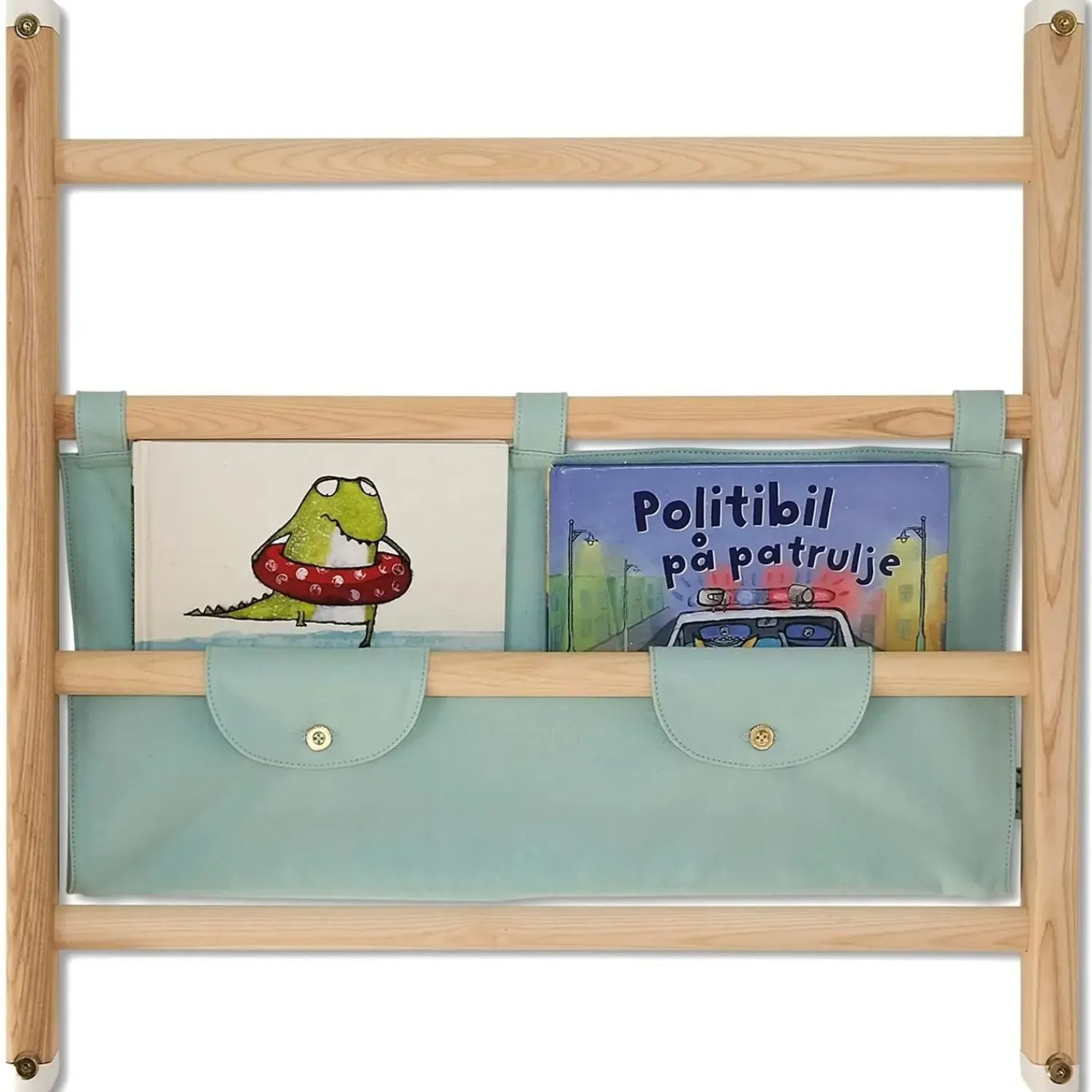 Skræddersyet tekstilhylde fra KAOS til din Endeløs ribbevæg. Fremstillet i kraftig bomuldskanvas med messingknapper og to praktiske stoflommer, der giver dig god opbevaringsplads til legetøj, bøger og andre småting.