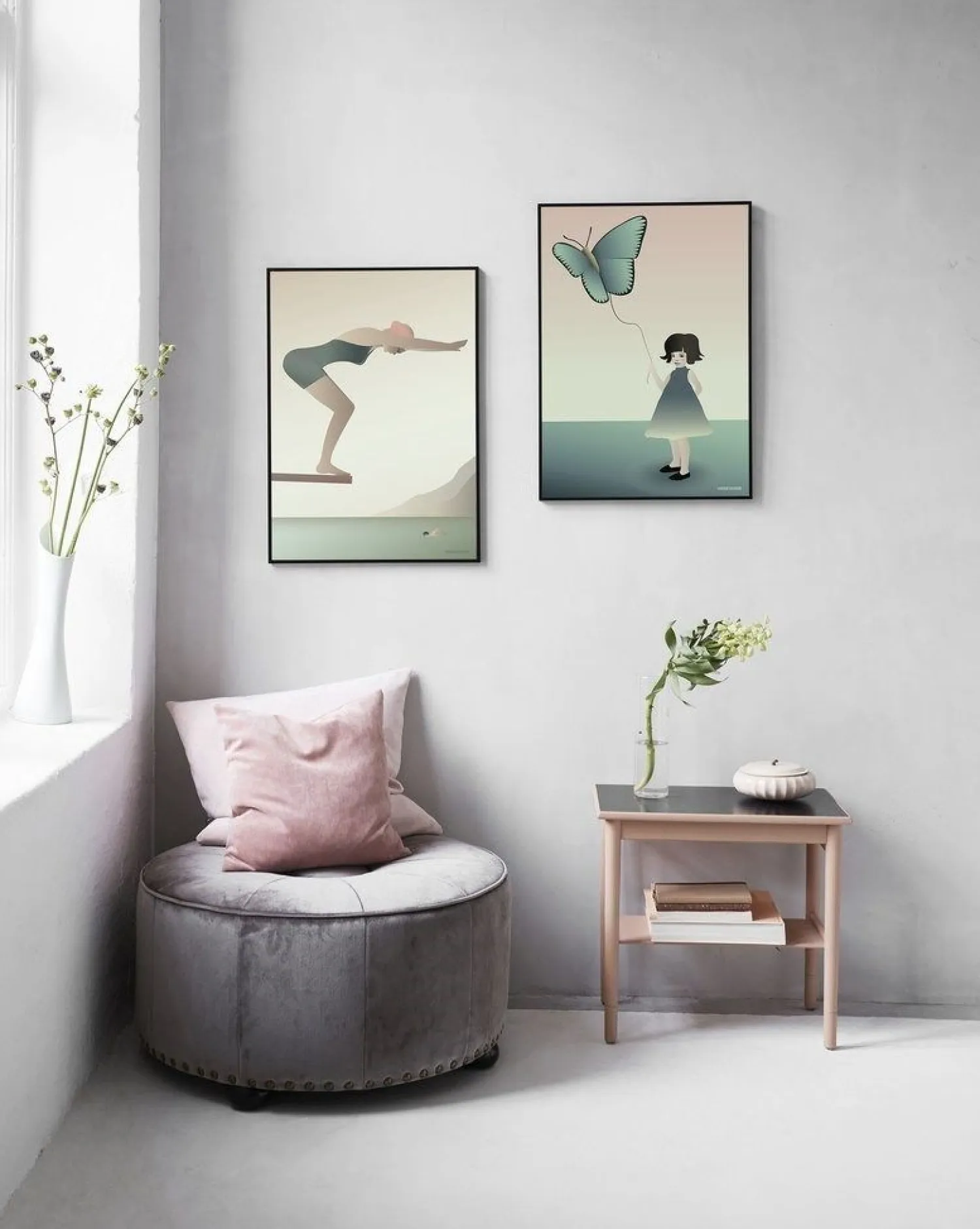 Super fin plakat med pigen og sommerfuglen. Åh – vi bliver mindet om barndommens glæder, hvor alt er en leg og fantasien får frit løb. Her kan vi drømme os til en verden, hvor alle dyr og insekter er vores venner. Mon du har drømt om at have en gigantisk, smuk sommerfugl som ven, som du kan flyve væk med? Ligesom i H.C. Andersens eventyr om Tommelise, hvor hun med hjælp fra en sommerfugl flygter på et åkandeblad fra skrubtudsen, der vil have hende til at gifte sig med sin søn.