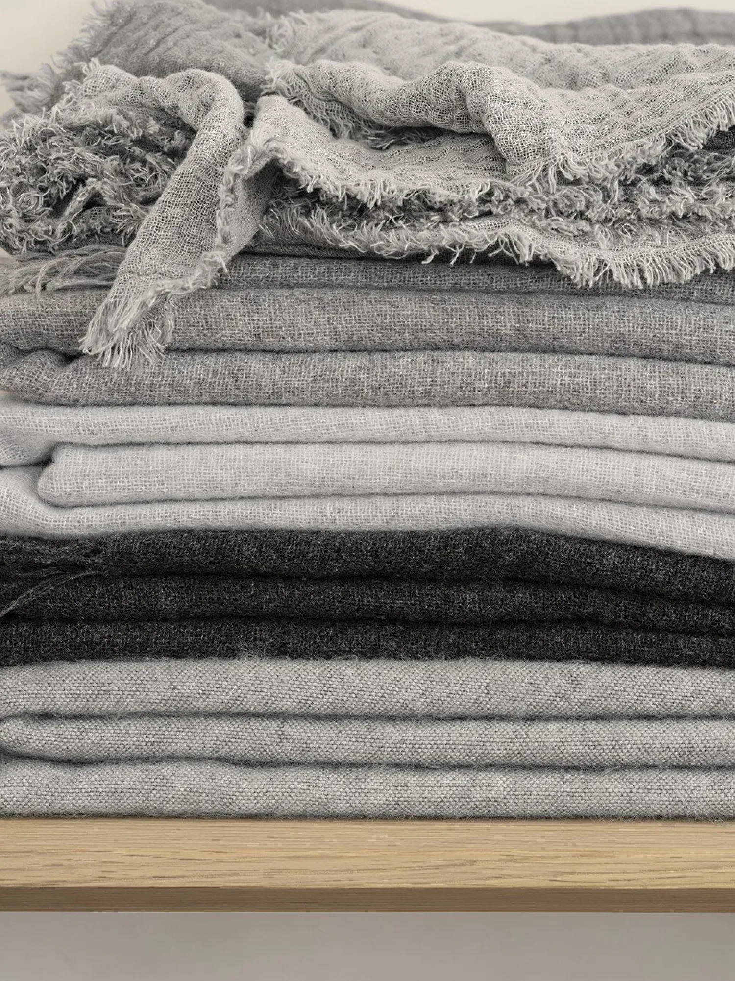 Upåfaldende i forskellige afdæmpede nuancer, er dette afslappede kast perfekt til at putte sig på kølige dage eller aftener, lige når det bliver lidt køligere. Et fint uldkast i meleret fnug; denne er lavet af en blanding af 85% Merinould og 15% Cashmere og imponerer med sin blide beskedenhed. Merinoulden er Mulesing-fri og blev forarbejdet og vævet udelukkende i Italien. Mulesing fri merinould.