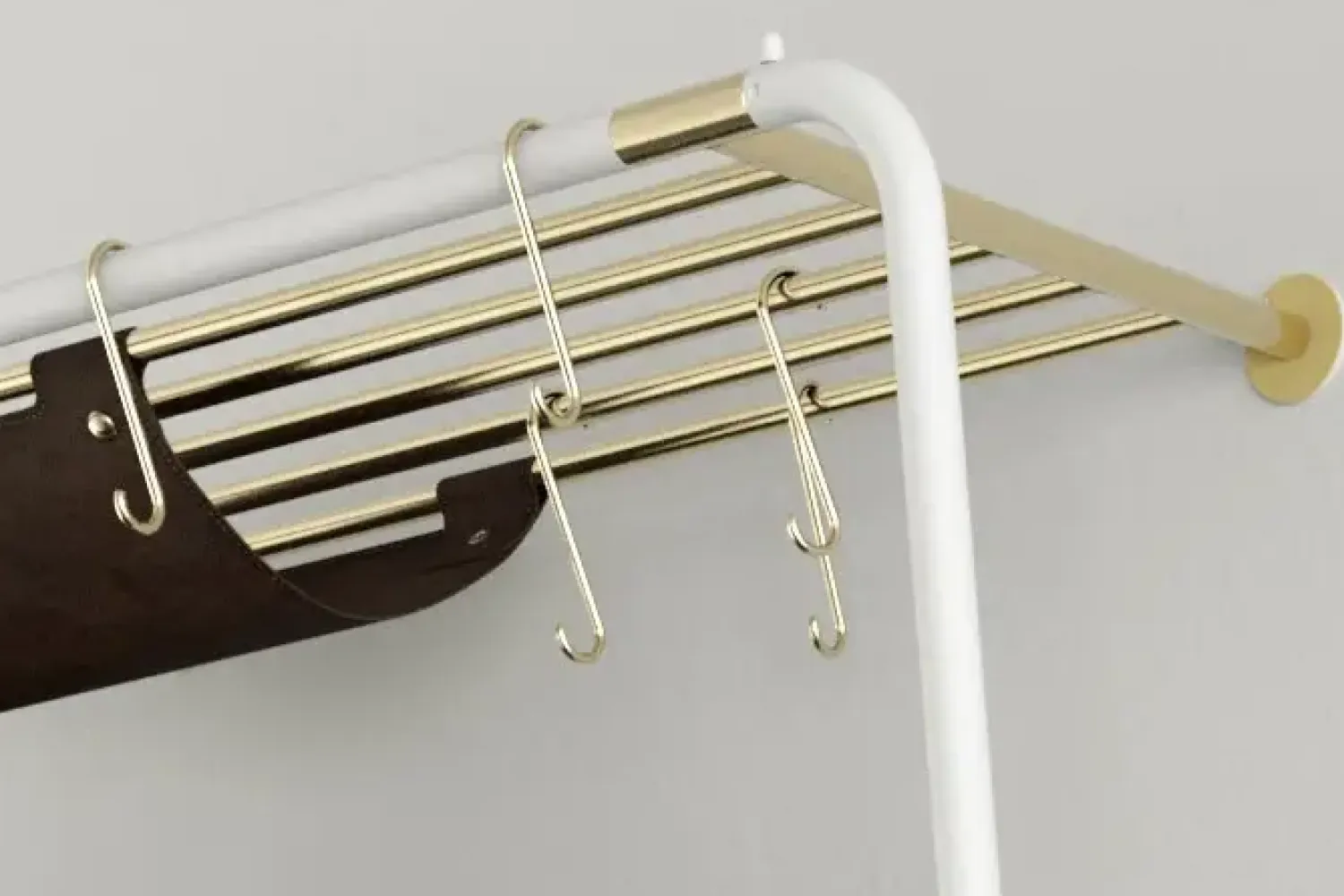 Materiale: Stål (pulverlakeret/forgyldt messing), kunstlæder (dark brown)