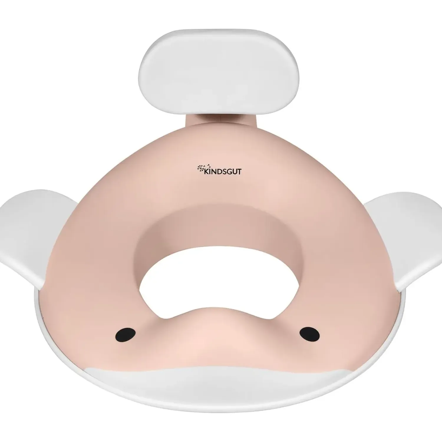 Dette toiletsæde fra Kindsgut har et hvaldesign i farven fersken med øjne og finner, der gør toilettræning mere indbydende for dit barn. Designet hjælper med at gøre overgangen til toilettet mindre skræmmende og mere legende for små børn.