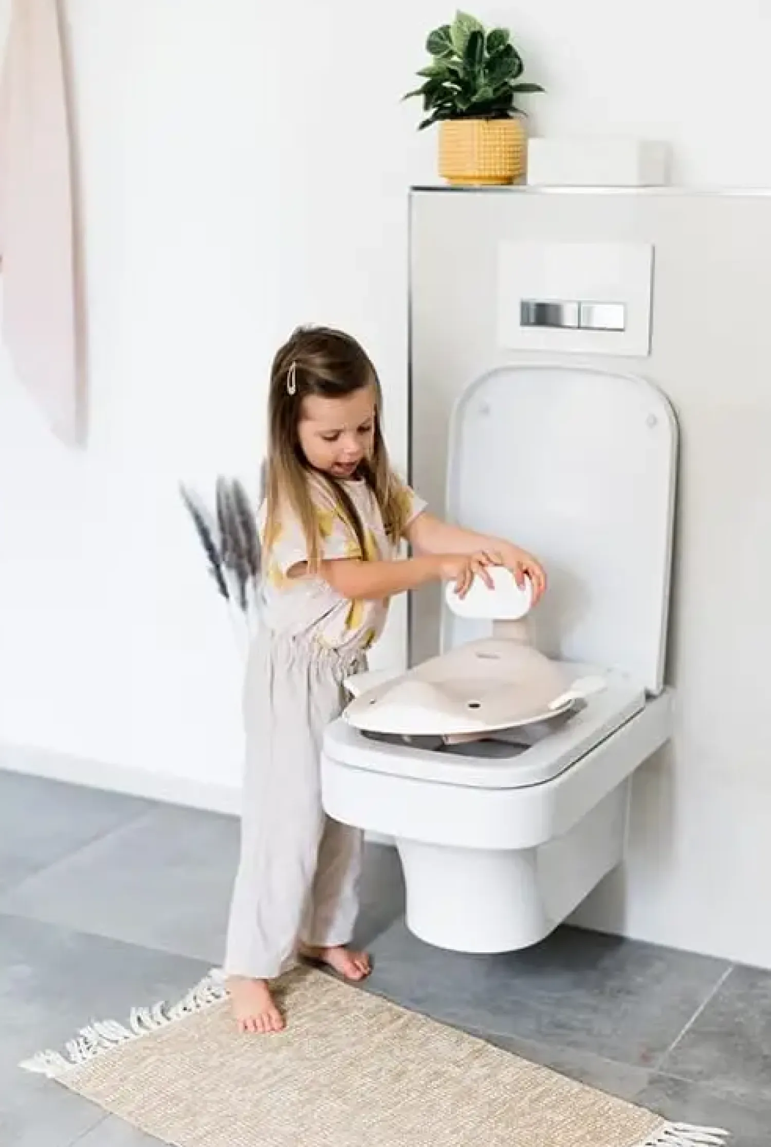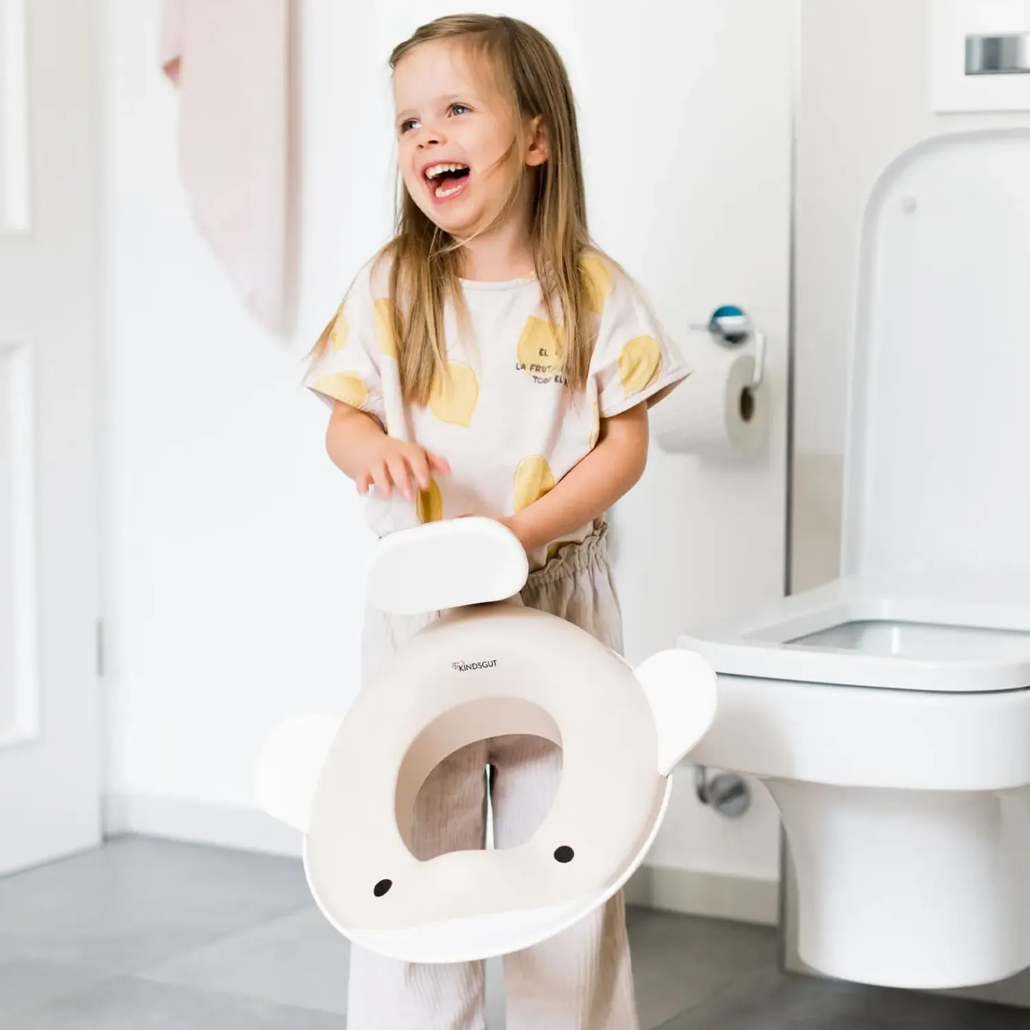 Den skridsikre, gummibelagte underside giver ekstra stabilitet, så sædet forbliver på plads, mens dit barn lærer at bruge toilettet selvstændigt. Dette reducerer risikoen for, at sædet glider, og giver dig ro i sindet. Sædet passer til alle standardtoiletter, så du kan integrere det i dit eksisterende badeværelse uden tilpasninger.