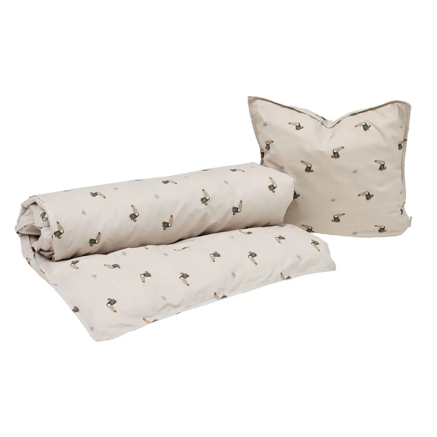 Dette juniorsengetøj fra OYOY kombinerer kvalitetsbomuld med et charmerende toucan-mønster. Sættet består af både dynebetræk og pudebetræk i samme design, fremstillet af Oeko-Tex-certificeret bomuld, der sikrer en tryg nattesøvn.