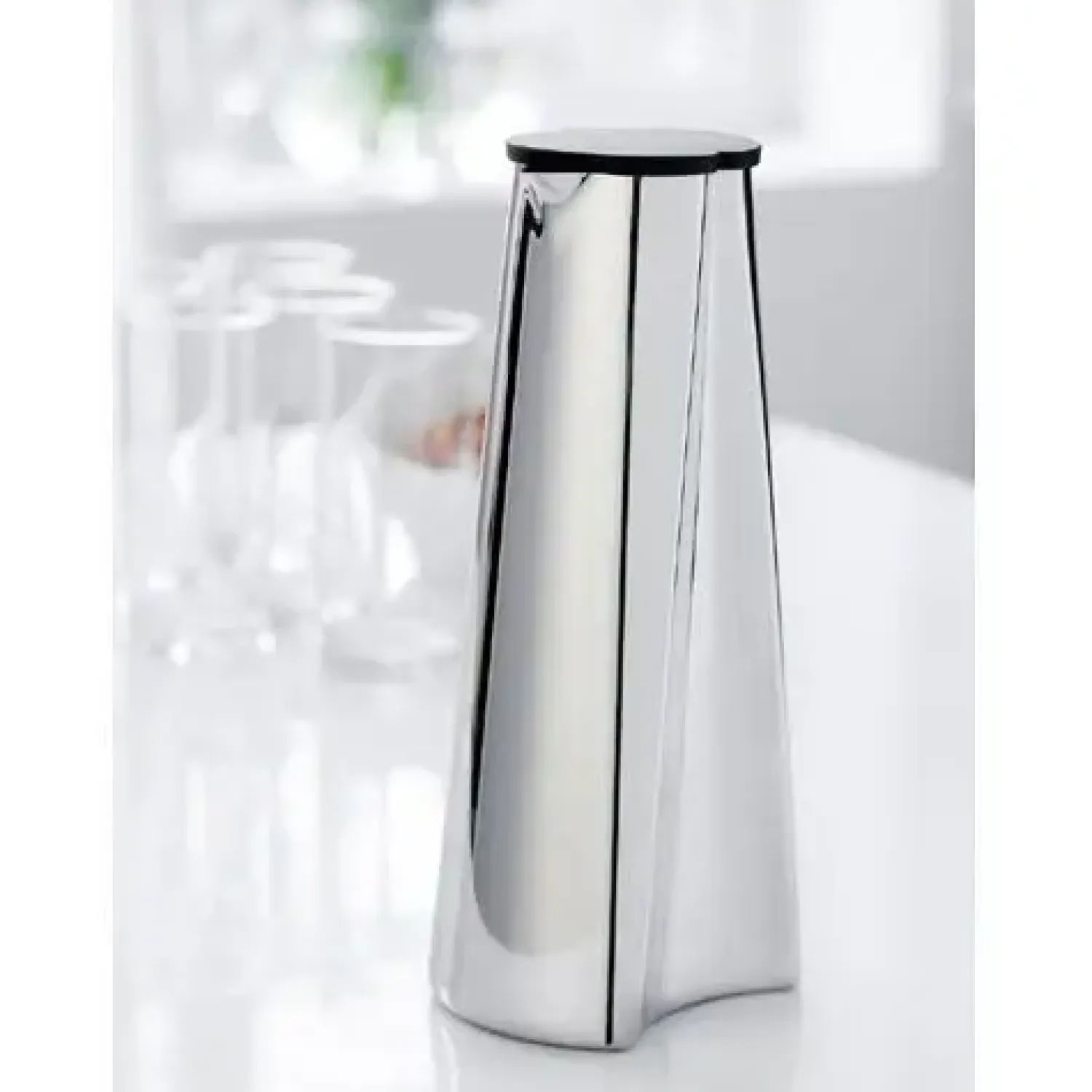Denne 1-liters kande i højglanspoleret stål kombinerer holdbarhed med funktionalitet. Det vendbare silikonelåg sikrer en tæt forsegling, så dine drikkevarer holder sig friske længere – både under servering og opbevaring.
