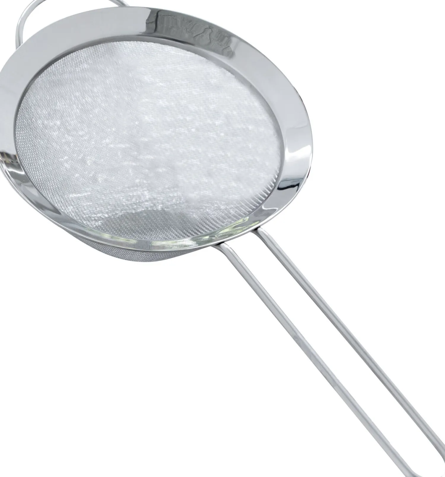 Denne trådsigte med bred kant giver dig fuld kontrol over dine ingredienser. Den stabile konstruktion sikrer, at du kan sigte mel, sukker og andre tørre ingredienser uden spild. Takket være det dobbelte net får du en effektiv sigtning hver gang.