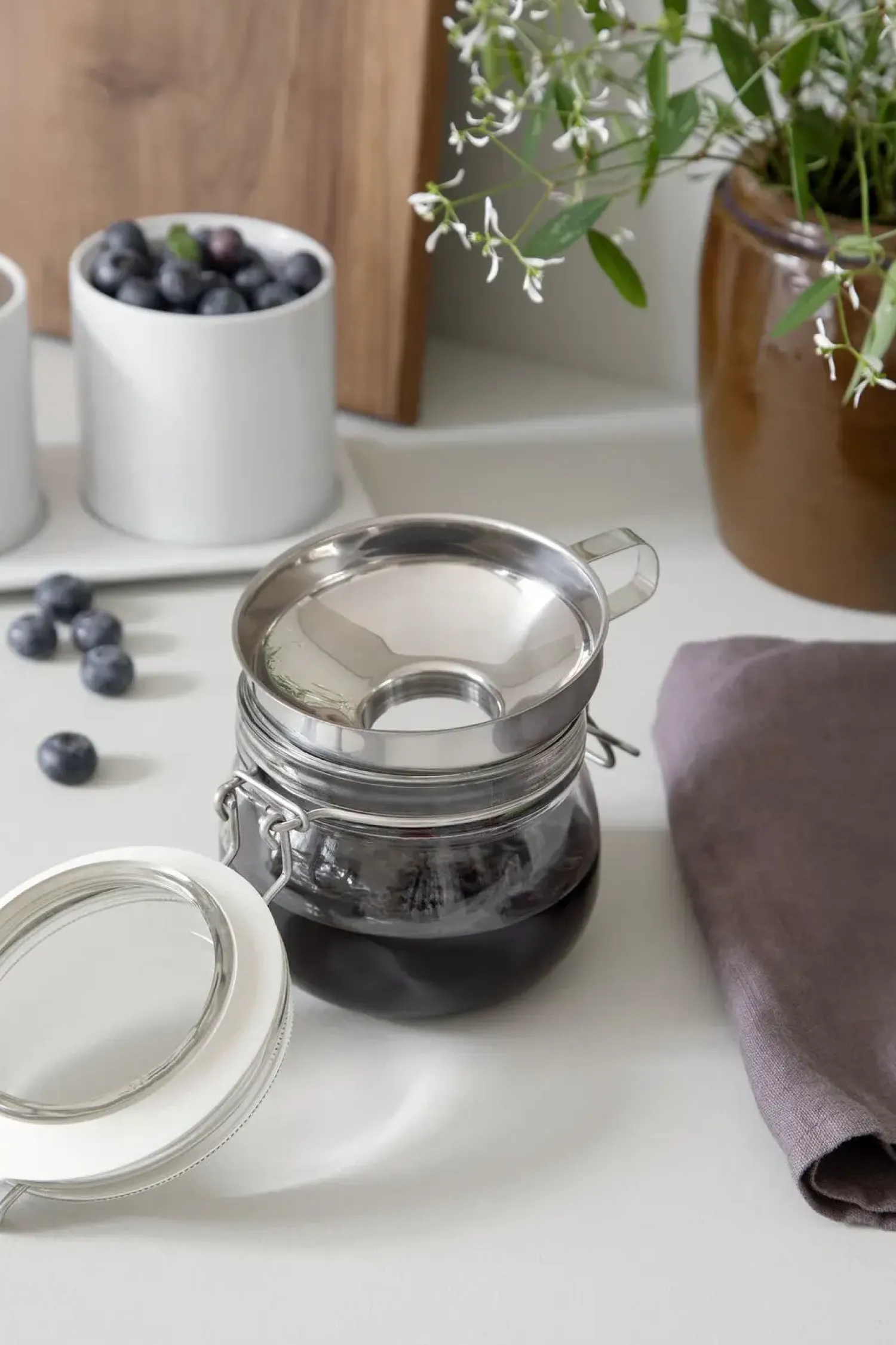 Rustfrit stål er ideelt til køkkenbrug, da det er modstandsdygtigt over for forskellige væsker og fødevarer. Du kan nemt rengøre tragten i varmt vand, og materialet bevarer sin finish selv efter hyppig brug.