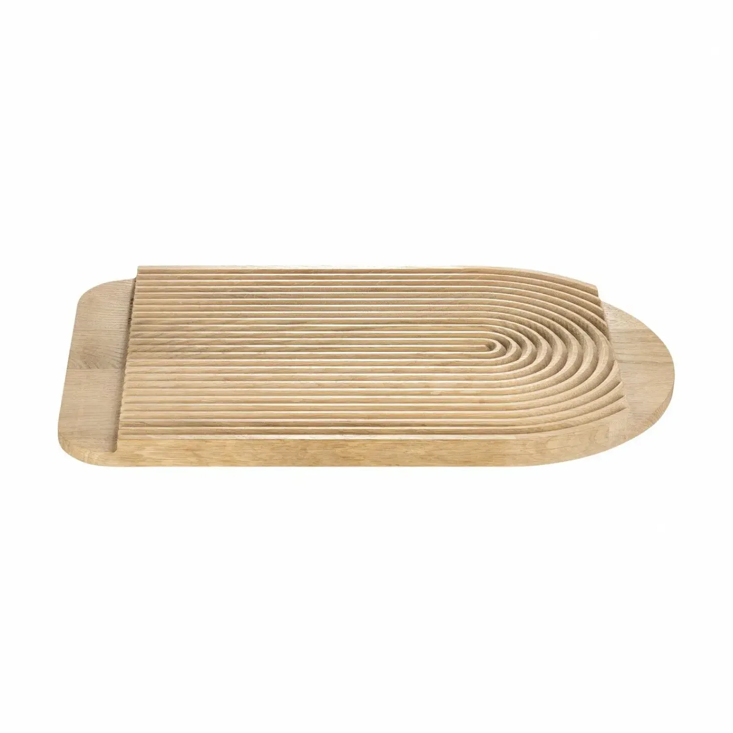 Lige så dygtigt som med det eksisterende PALUA-sæt, der består af to egetræsbrædder, der minder om etagères, bruger studiomeiid enkle, geometriske former til de nye ZEN-plader, hvilket giver genstandene et klart og funktionelt udtryk. ZEN kan bruges på begge sider og kombinerer dermed funktionen af en bakke og brødskærebræt i ét: Ved skæring af brød og rundstykker fanges krummerne i rillerne. Når bakken er vendt, har den en let hævet kant, hvilket understreger dens funktion som en elegant serveringsbakke.