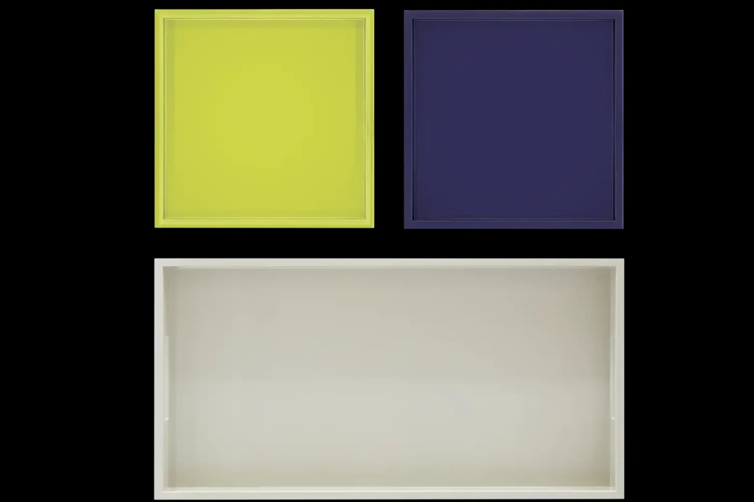 Sættet inkluderer to kvadratiske og en rektangulær bakke. Den store rektangulære bakke måler 50 x 25 x 4,5 cm, hvilket gør den ideel til servering af lækkerier eller som et dekorativt element. De to mindre kvadratiske bakker, hver med målene 23,5 x 23,5 x 3,5 cm, er perfekte til mindre genstande som nøgler, mobiltelefoner eller smykker. Bakkernes stabelbare design gør opbevaring nem og pladsbesparende, hvilket er praktisk for moderne hjem. Uanset om du bruger dem enkeltvis eller som et sæt, tilbyder Trias-bakkerne fleksibilitet i din daglige indretning.