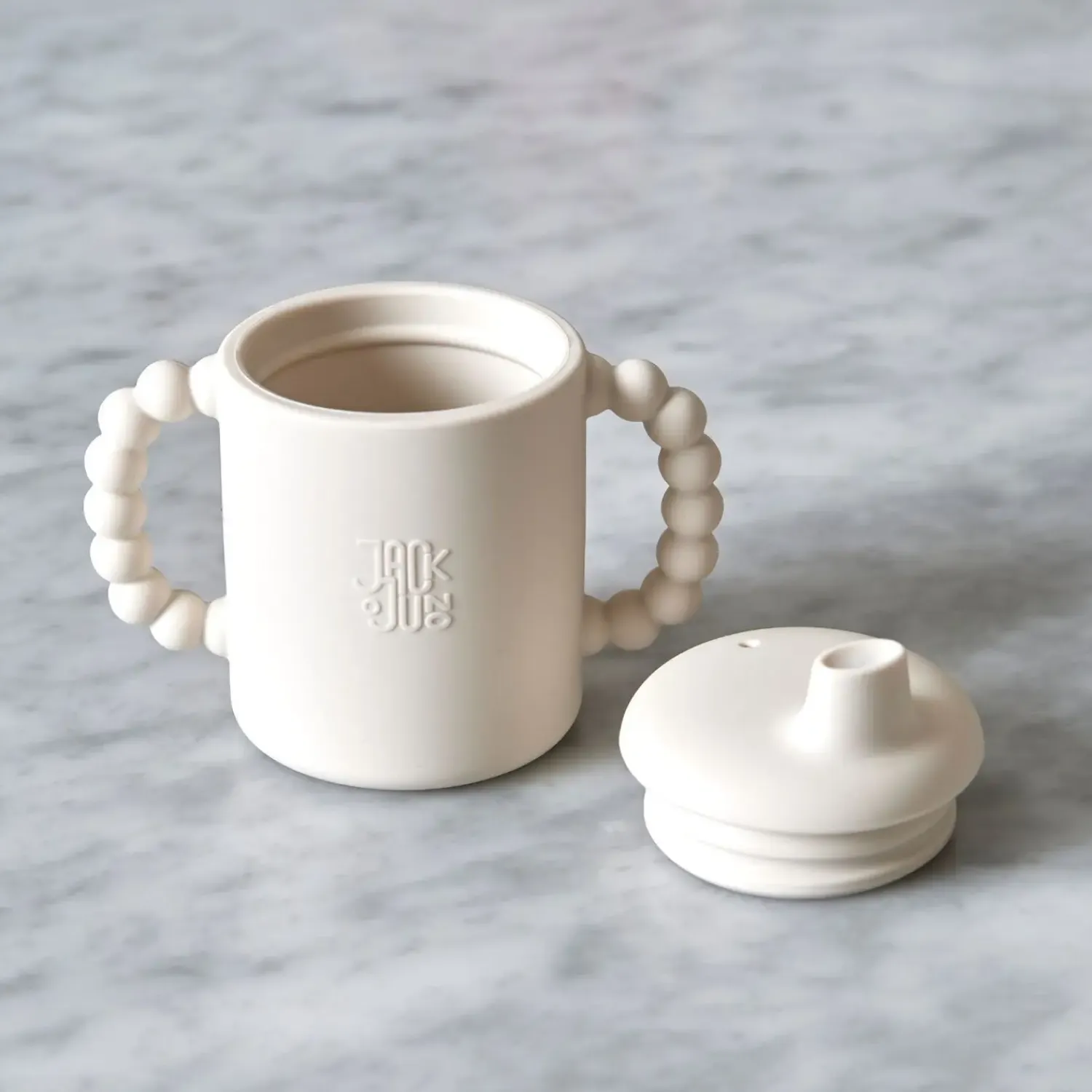 Jack o Juno – Tudekop – Bubble Sippy Cup – Cream er en funktionel drikkeløsning til små børn. Fremstillet af fødevaregodkendt silikone kombinerer den praktiske egenskaber med et karakteristisk design. Denne innovative tudekop er designet til at gøre overgangen fra flaske til kop nemmere og mere sikker for både børn og forældre.