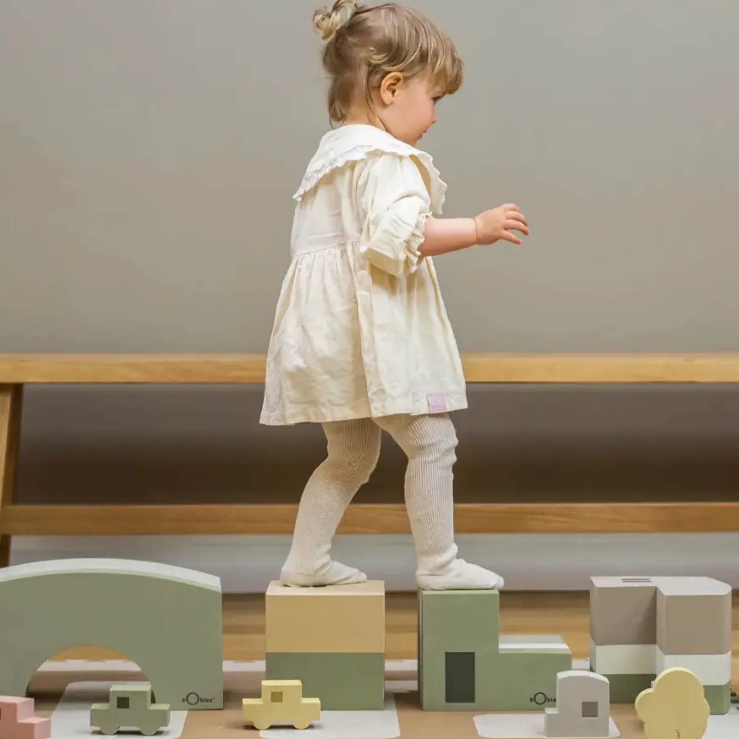 Brug dem til at lave udfordrende tumlebaner, eller lad de små, spirende arkitekter bygge deres egen by med veje, huse, træer og små farverige biler – Kun fantasien sætter grænser!